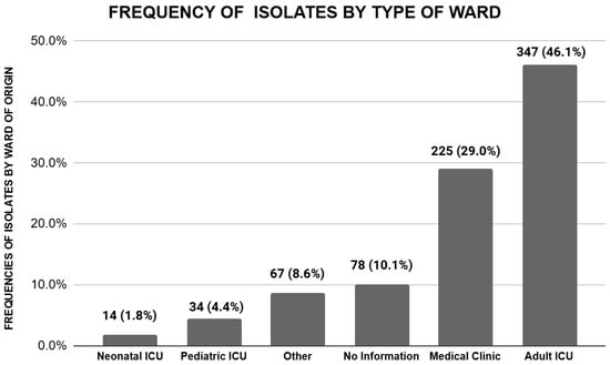 Total frequency of Klebsiella spp. isolates by ward of origin.
