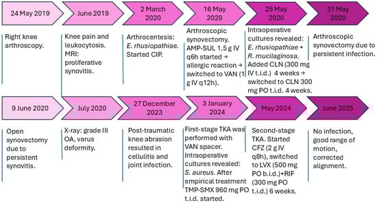 Chicago/Turabian StyleVaznaisiene, Danguole, Matas Simkus, Edita Druzaite, Justinas Stucinskas, and Pranciskus Bakutis. 2025. "Knee Septic Arthritis Caused by Coinfection with Rothia mucilaginosa and Erysipelothrix rhusiopathiae" Antibiotics 14, no. 9: 880. https://doi.org/10.3390/antibiotics14090880