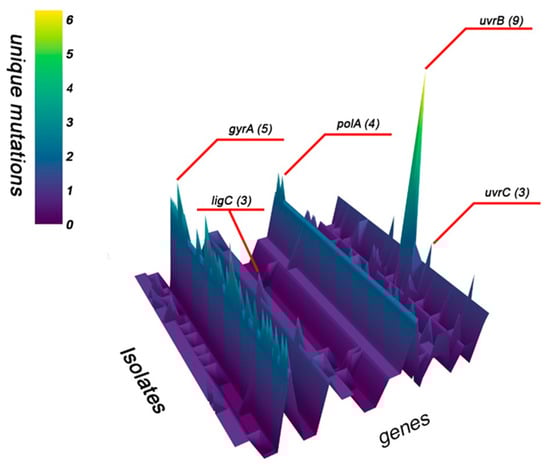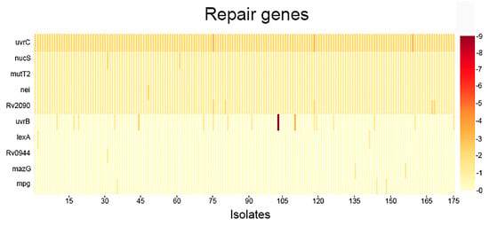 - Naz, S.; Paritosh, K.; Sanyal, P.; Khan, S.; Singh, Y.; Varshney, U.; Nandicoori, V.K. GWAS and functional studies suggest a role for altered DNA repair in the evolution of drug resistance in Mycobacterium tuberculosis. eLife 2023, 12, e75860. [Google Scholar] [CrossRef]