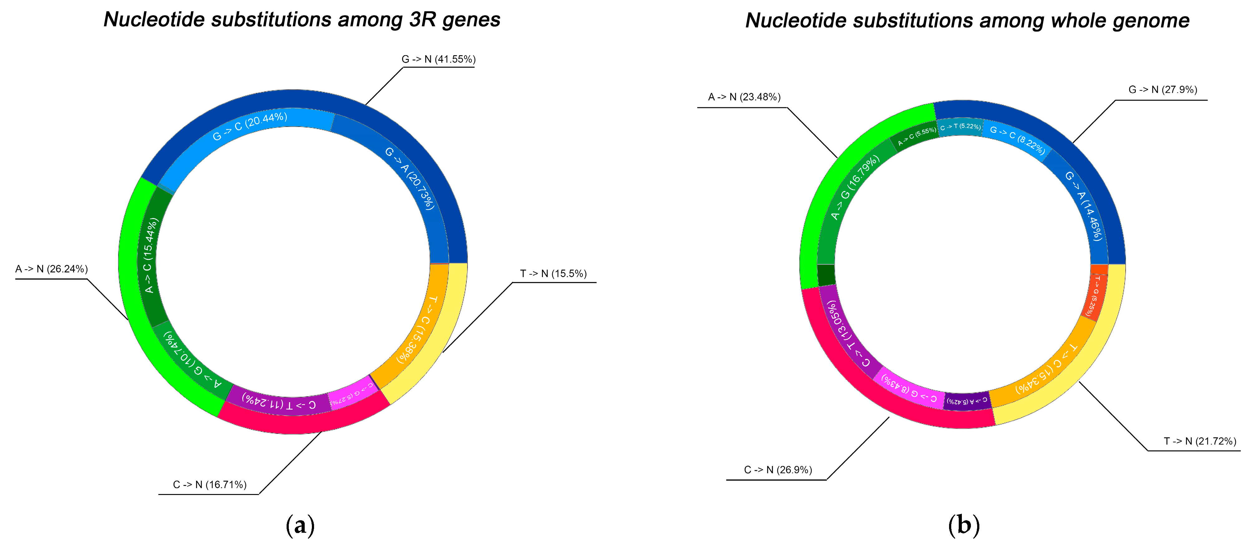 - Cano, A.V.; Rozhoňová, H.; Stoltzfus, A.; McCandlish, D.M.; Payne, J.L. Mutation bias shapes the spectrum of adaptive substitutions. Proc. Natl. Acad. Sci. USA 2022, 119, e2119720119. [Google Scholar] [CrossRef]