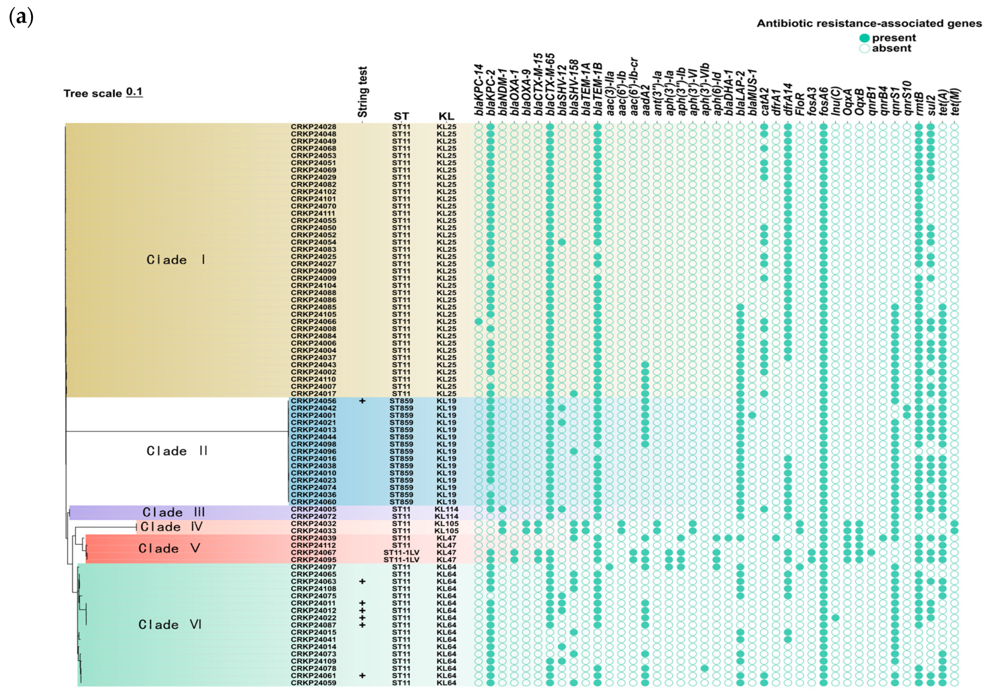 6. Chen, T.; Wang, Y.; Chi, X.; Xiong, L.; Lu, P.; Wang, X.; Chen, Y.; Luo, Q.; Shen, P.; Xiao, Y. Genetic, virulence, and antimicrobial resistance characteristics associated with distinct morphotypes in ST11 carbapenem-resistant Klebsiella pneumoniae. Virulence 2024, 15, 2349768. [Google Scholar] [CrossRef]