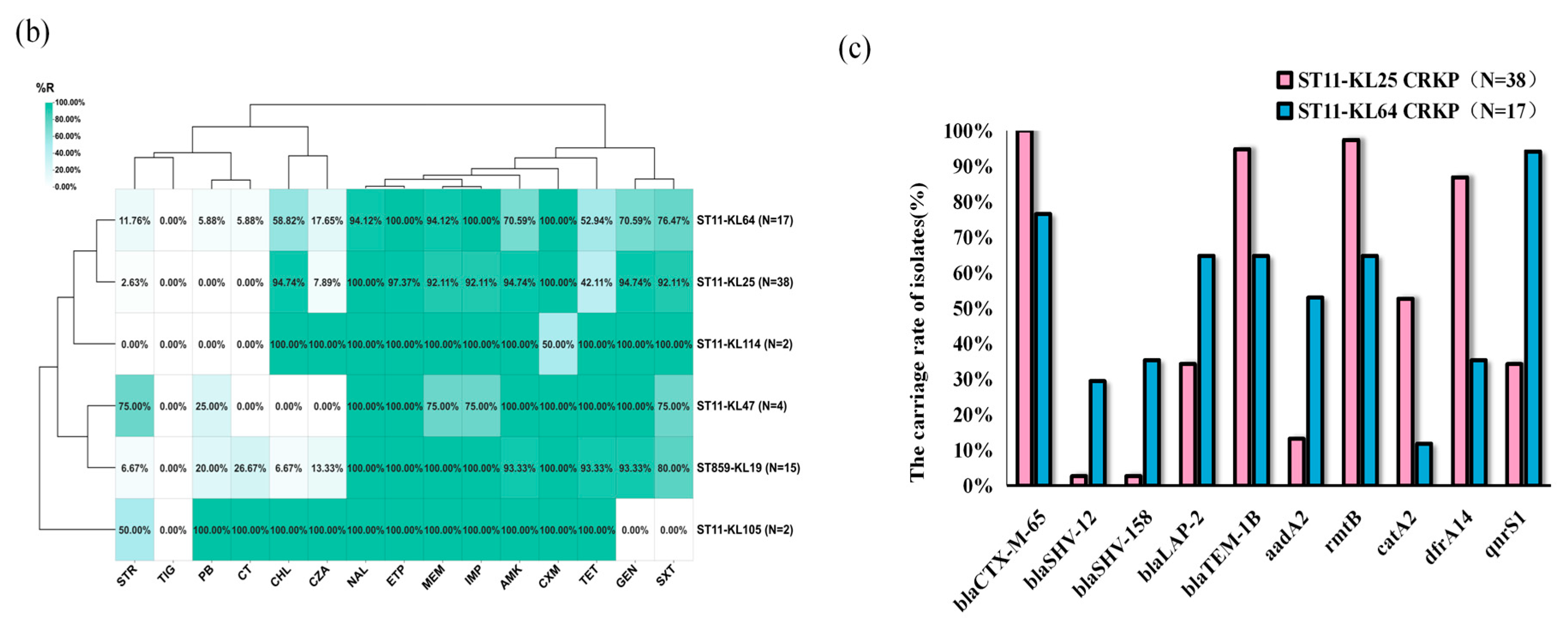 Table 3. Comparison of antimicrobial resistance rates between ST11-KL64 and ST11-KL25 CRKP clinical isolates.