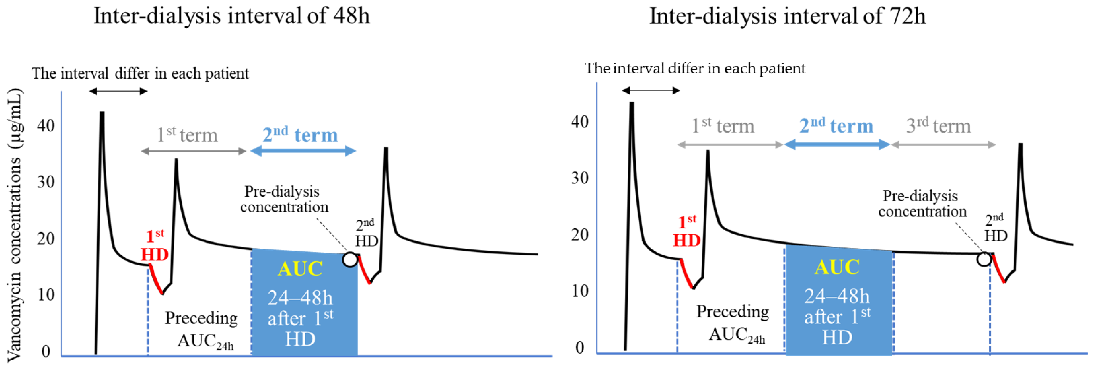 - Lewis, S.J.; Nolin, T.D. New Vancomycin Dosing Guidelines for Hemodialysis Patients: Rationale, Caveats, and Limitations. Kidney360 2021, 2, 1313–1315. [Google Scholar] [CrossRef]