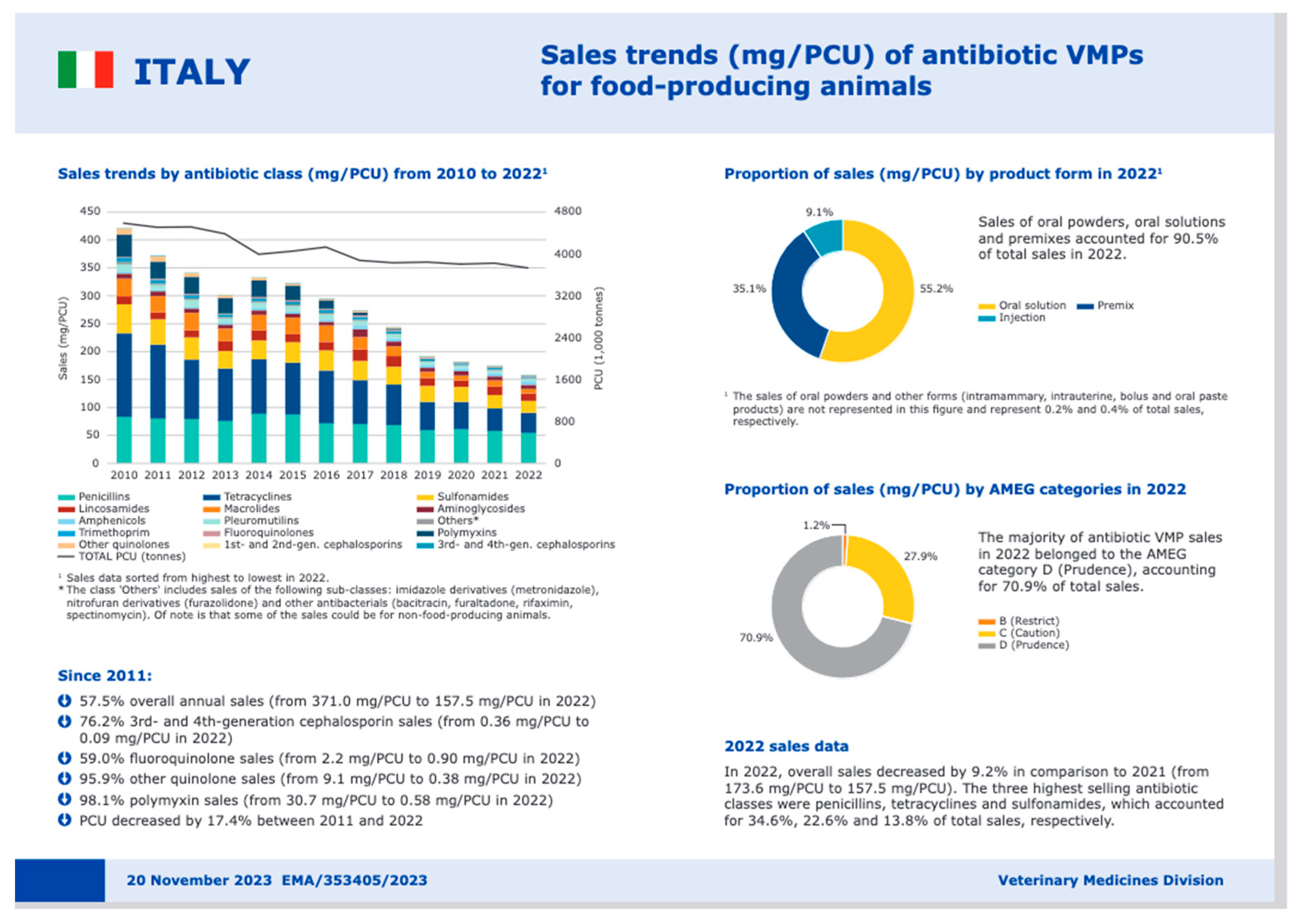- European Medicines Agency (EMA). Sales of Veterinary Antimicrobial Agents in 31 European Countries in 2021 Trends from 2010 to 2021 Twelfth ESVAC Report (EMA/795956/2022); Publications Office of the European Union: Luxembourg, 2022; Available online: https://www.ema.europa.eu/en/documents/report/sales-veterinary-antimicrobial-agents-31-european-countries-2021-trends-2010-2021-twelfth-esvac-report_en.pdf (accessed on 18 June 2025).