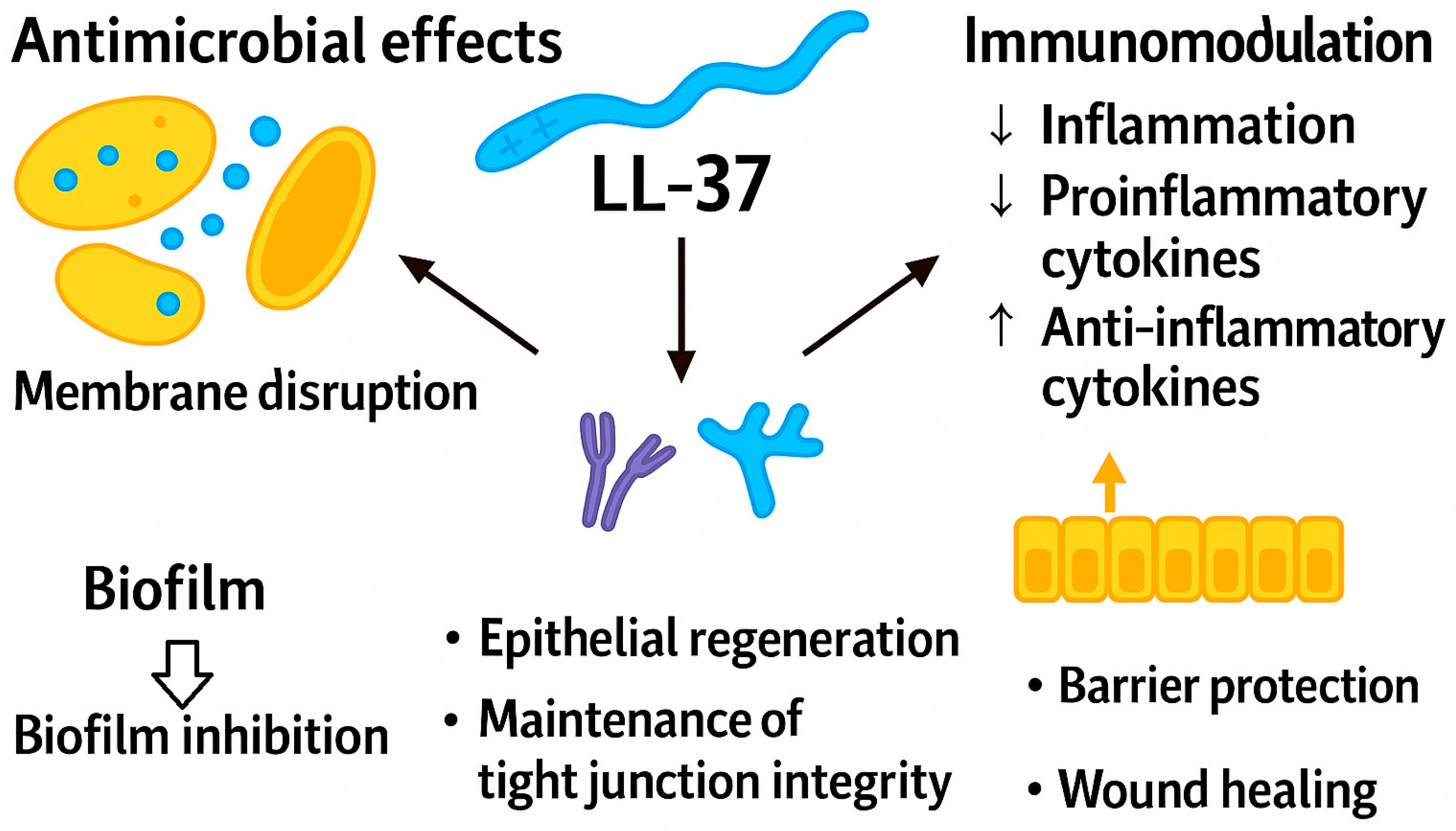 2.1.2. Cathelicidin LL-37 in the Gut: Immunomodulatory Mechanisms and Barrier-Protective Functions