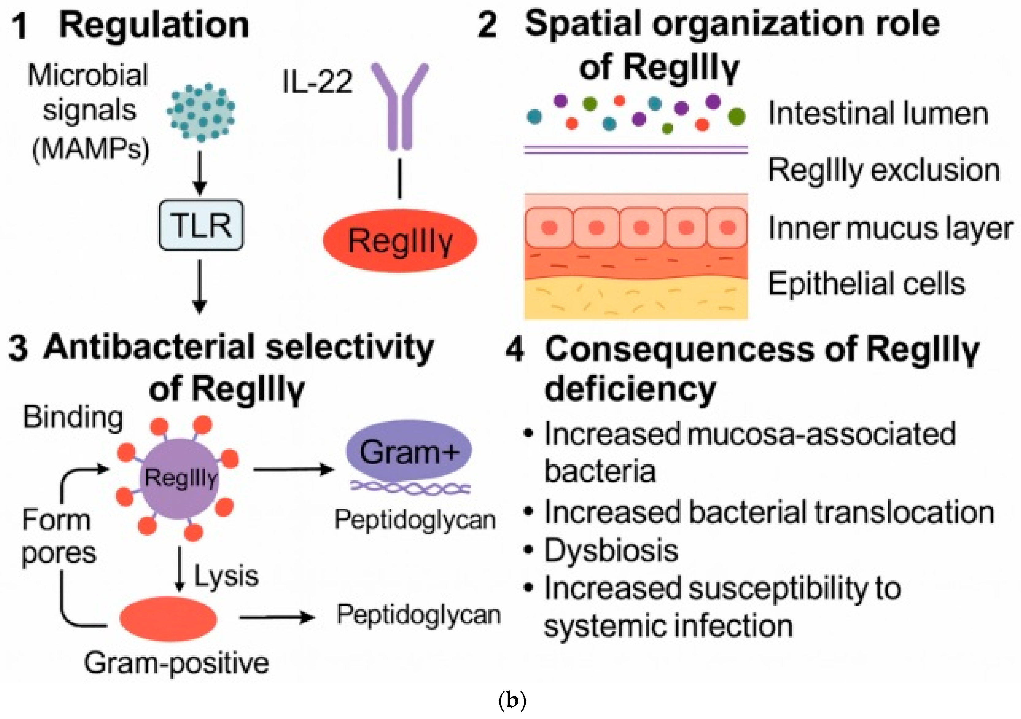 - Creating a sterile layer over the epithelium (especially due to RegIIIγ), preventing bacterial contact with the mucosa;