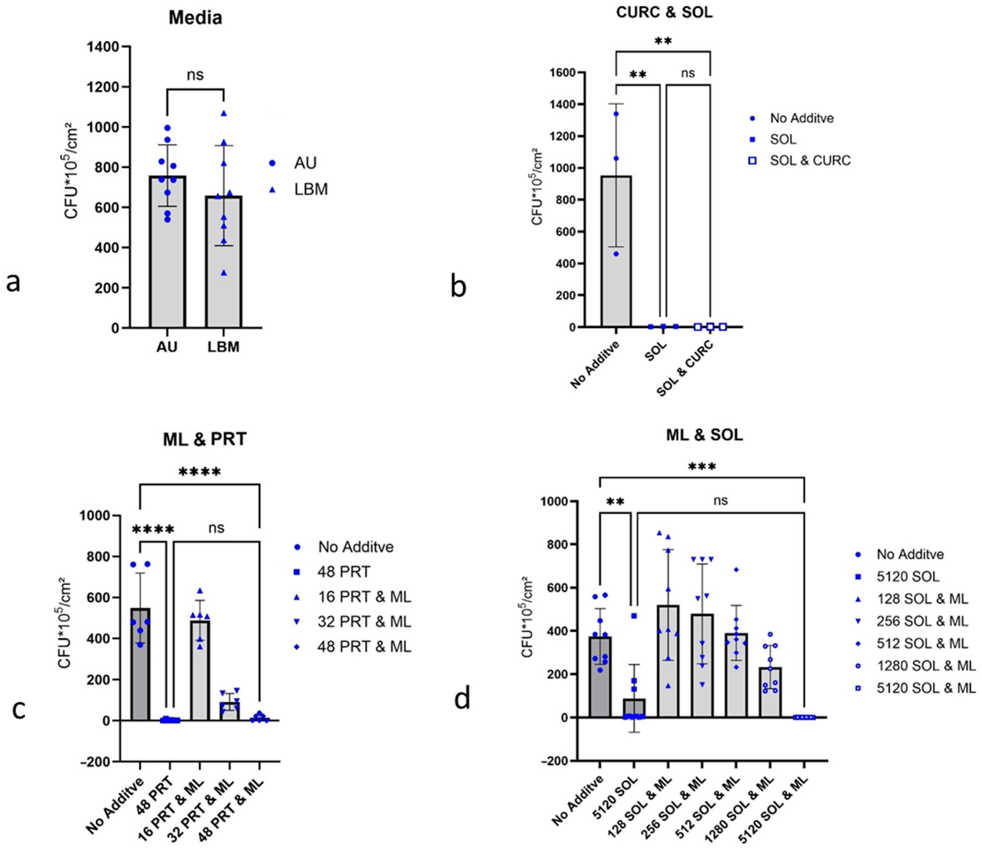 4.7. Estimation of Colony-Forming Units in the Biofilm