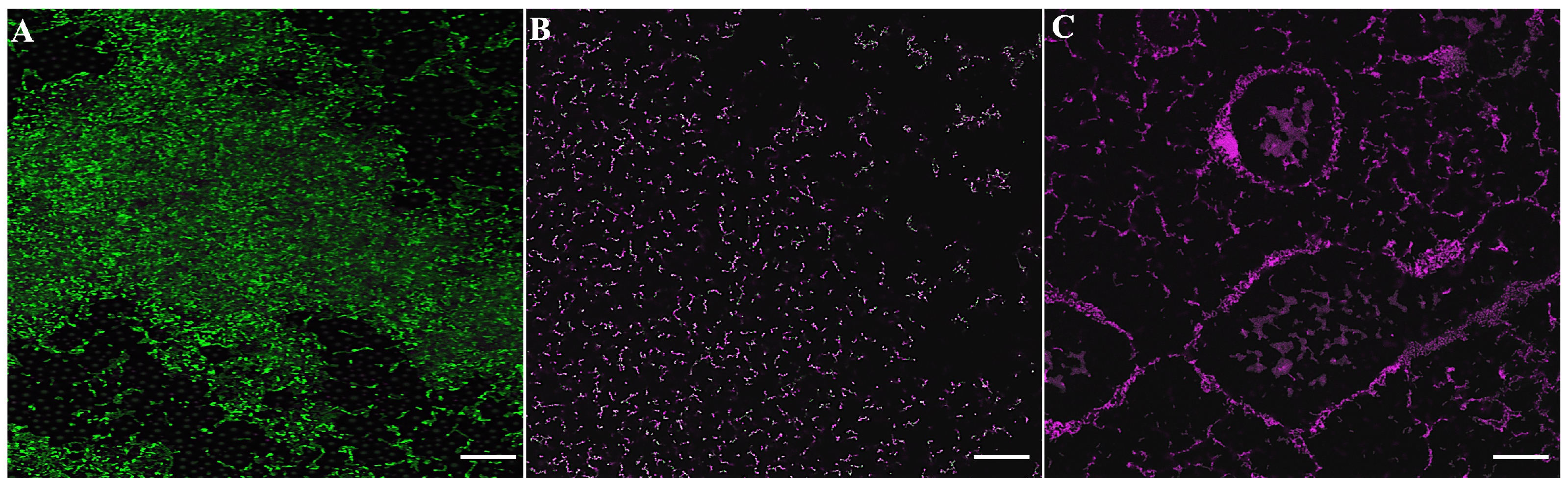 Confocal microscopy was used to evaluate the effects of the treatments on the multispecies biofilm composed of