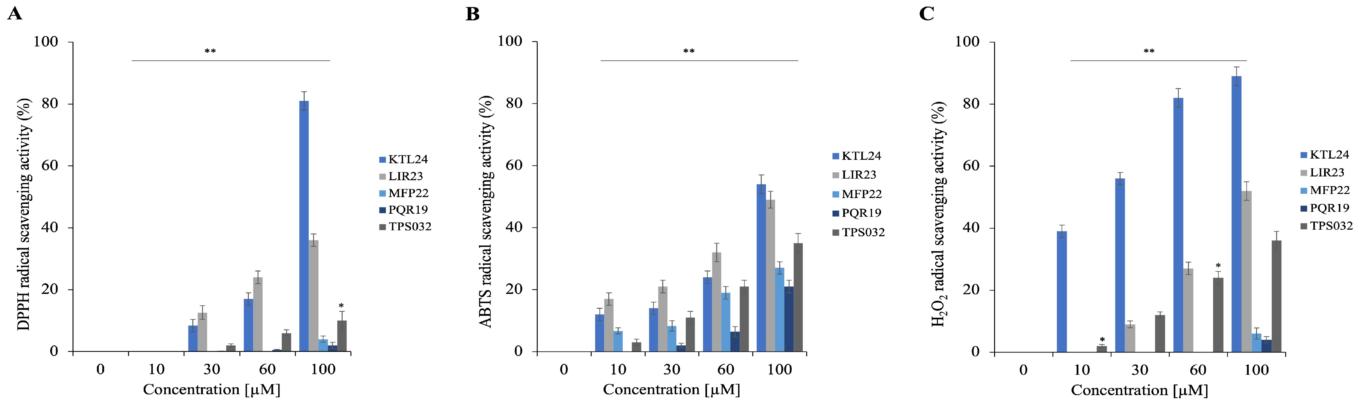 Moreover, KTL24 exhibited strong antioxidant activity, neutralizing over 80% of DPPH and H