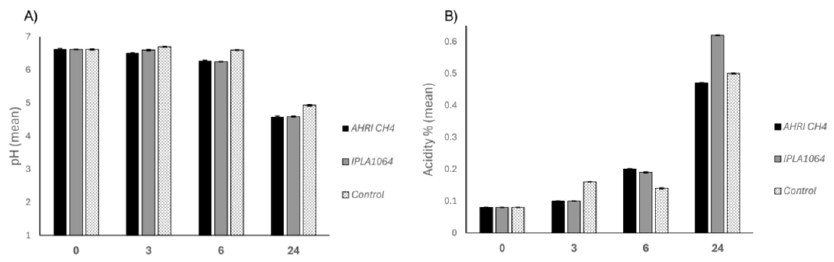 3.4. Evaluation of the Technological Properties of LAB Strains