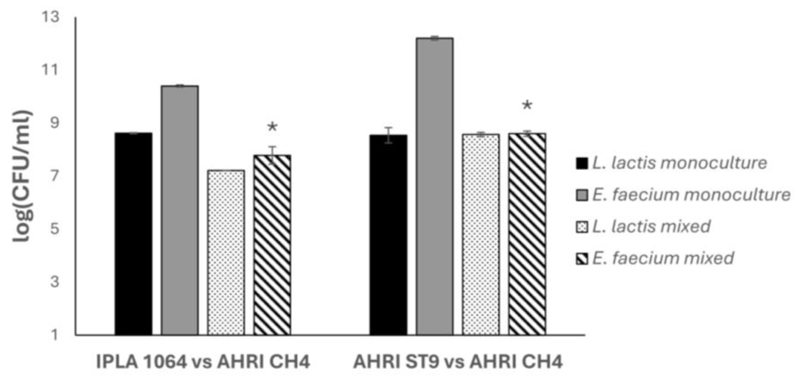 2.4. L. lactis Strains Are Protective Cultures Against E. faecium in a Fresh Cheese Model