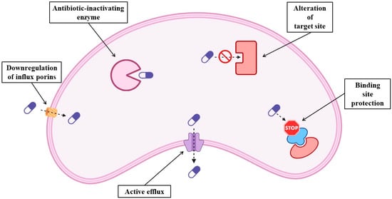 - Munita, J.M.; Arias, C.A. Mechanisms of Antibiotic Resistance. In Virulence Mechanisms of Bacterial Pathogens; Wiley: Hoboken, NJ, USA, 2016; pp. 481–511. [Google Scholar] [CrossRef]