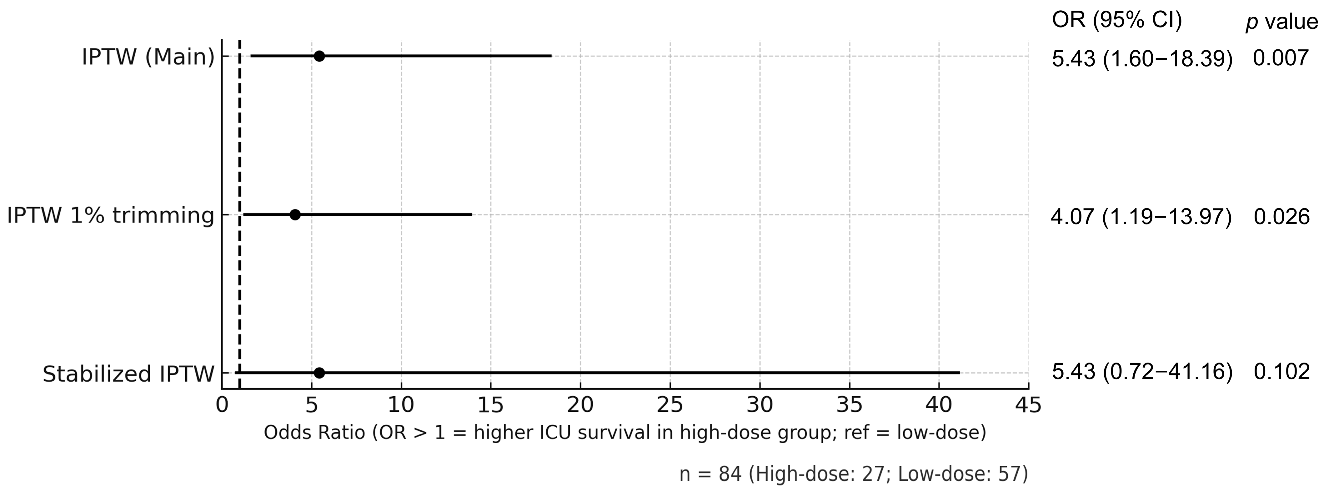 | High-Dose Group (n = 27) | Low-Dose Group (n = 57) | p Value | High-Dose Group | Low-Dose Group | ||||