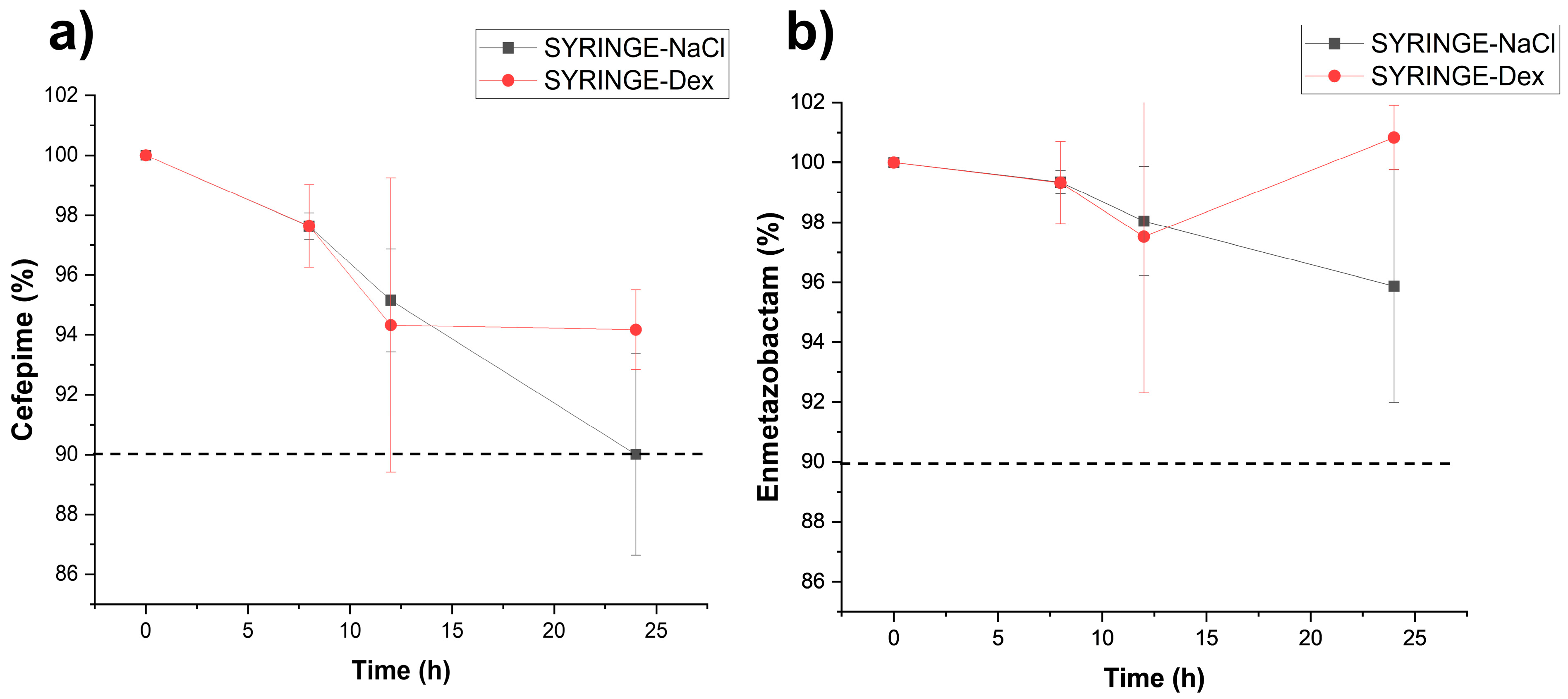 - Esteban-Cartelle, B.; Serrano, D.R.; Pérez Menéndez-Conde, C.; Vicente-Oliveros, N.; Álvarez-Díaz, A.; Fortún-Abete, J.; Martín-Dávila, P. Stability of meropenem in portable elastomeric infusion devices: Which protocol should be implemented in clinical practice? Microbiol. Spectr. 2024, 12, e0206423. [Google Scholar] [CrossRef]
