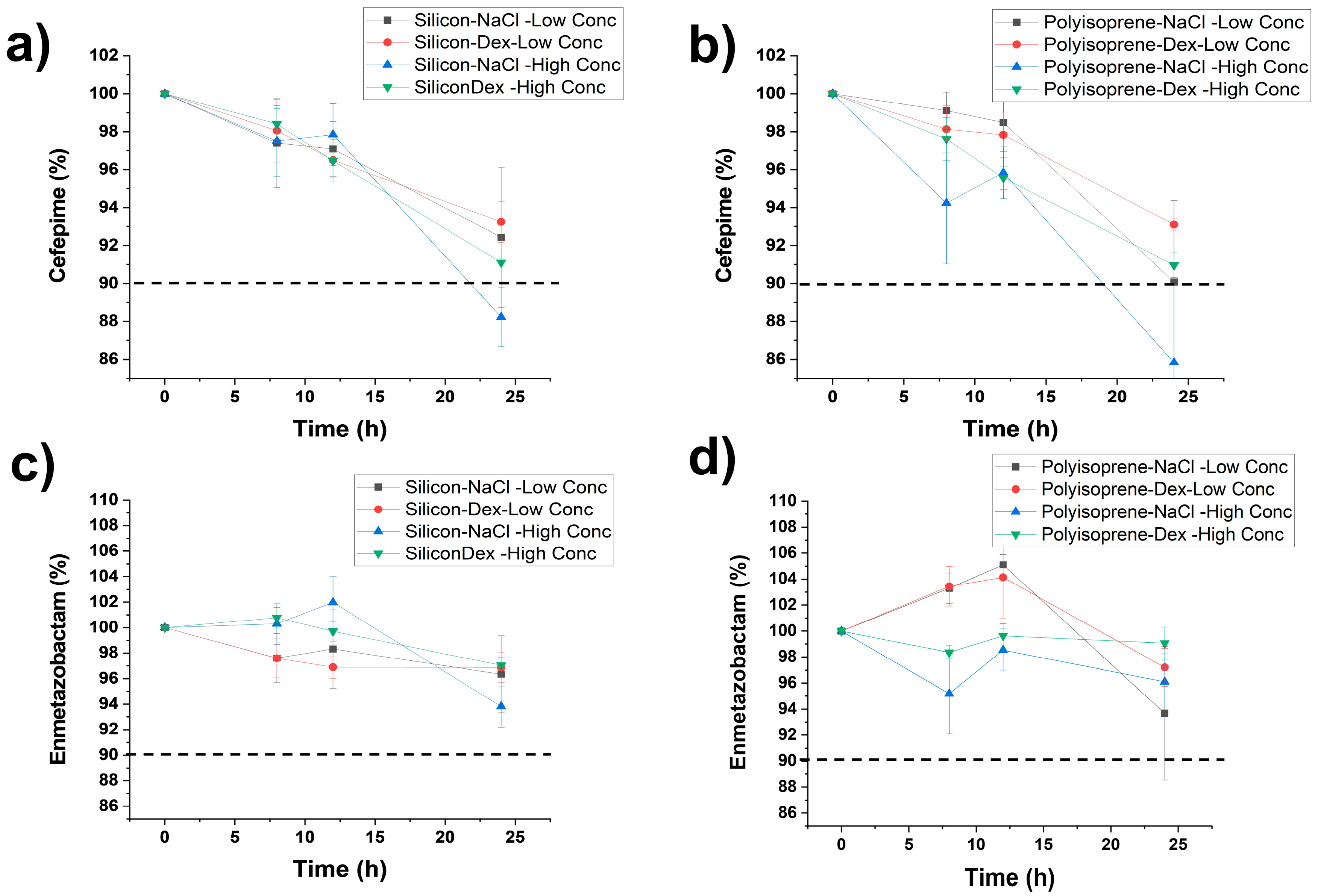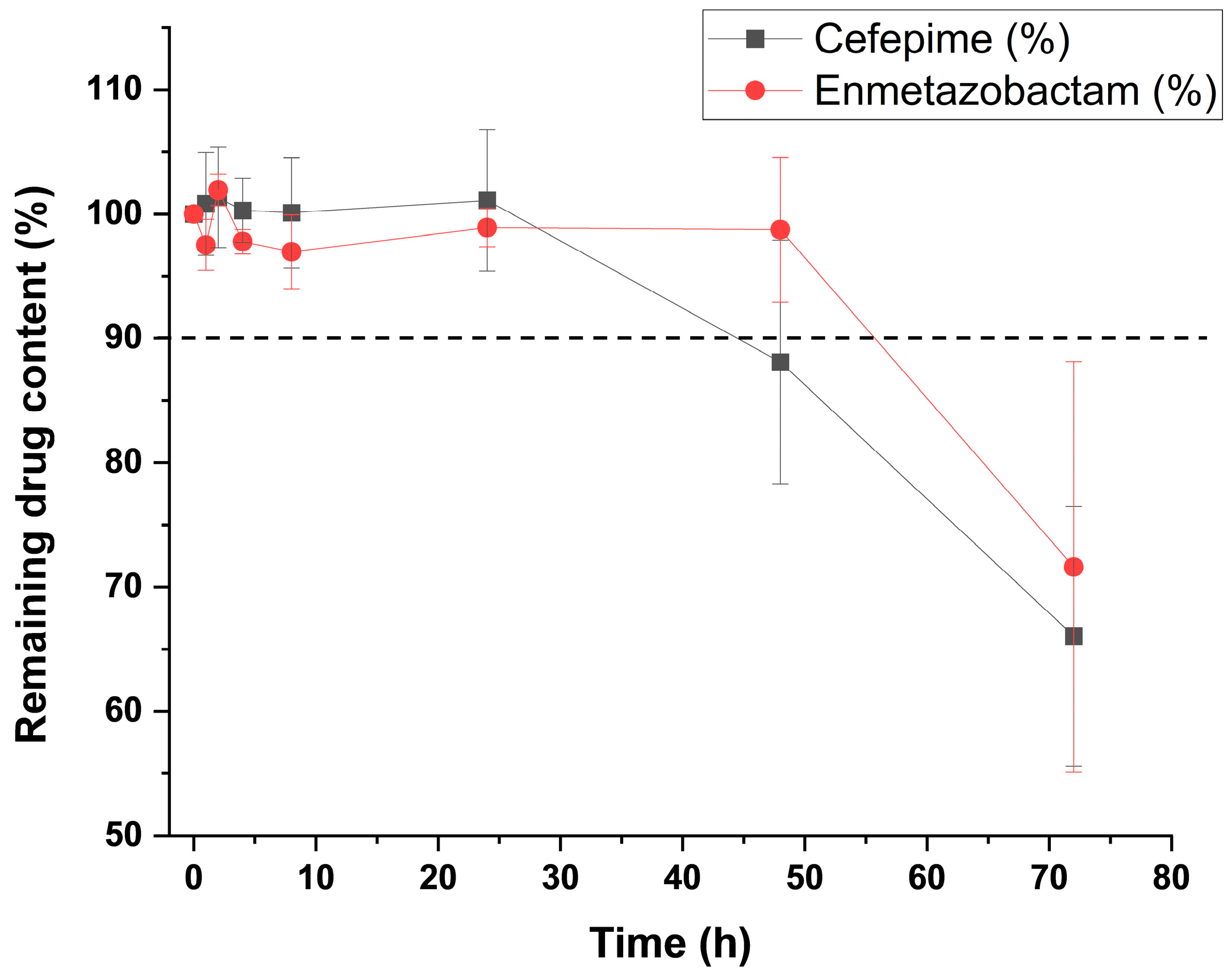 Chayem, A.; Quevedo, J.; Cure, S.; Jemmely, N.; Demore, B.; Esteban-Cartelle, B.; Anaya, B.J.; Peñalver, G.A.; Serrano, D.R.; D’Huart, E. CEFEPIME/ENMETAZOBACTAM: Physicochemical Stability of a Novel β-Lactam/β-Lactamase Inhibitor Combination in Syringes and Elastomeric Devices. Antibiotics 2026, 15, 114. https://doi.org/10.3390/antibiotics15020114