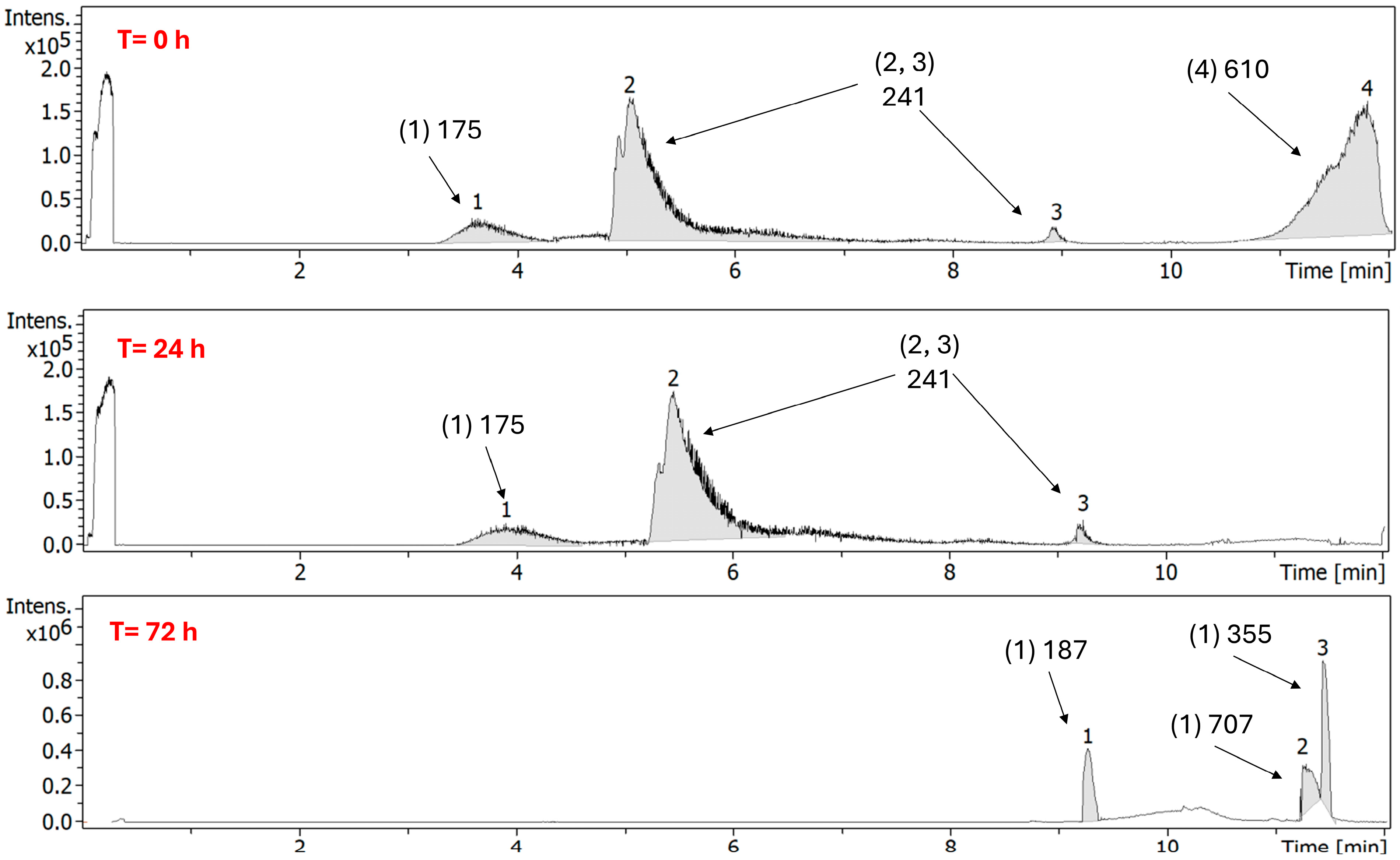 - Heat degradation: 1 mL of a 300 μg/mL FEP solution or 1 mL of a 75 µg/mL META solution was exposed to a temperature of 80 °C for 50 min. Solutions were analyzed directly without dilution.