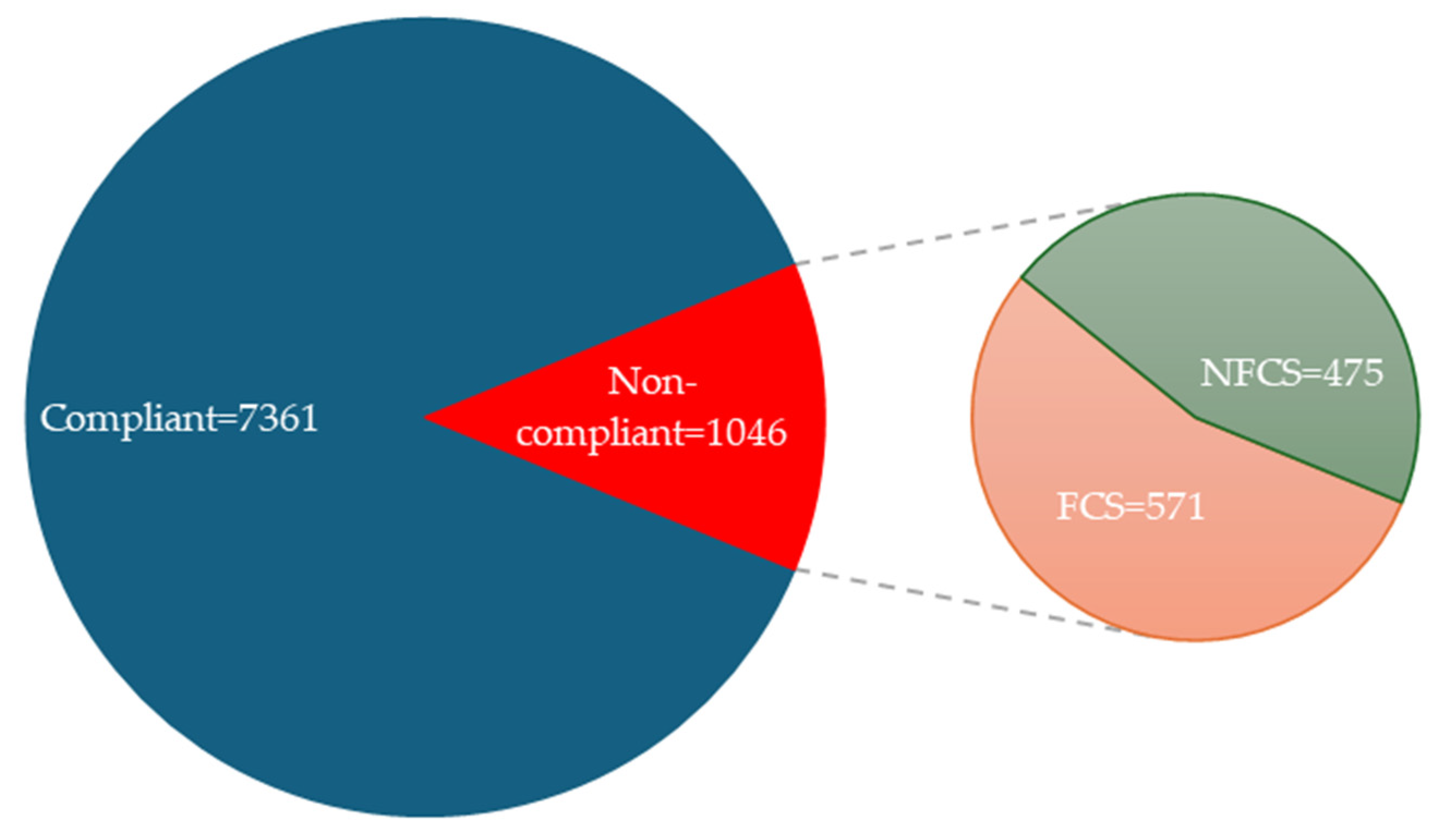 | Year | Total (N) | Non-Compliant (n) | Non-Compliant (%) | OR (vs. 2019) | 95% CI | p-Value |