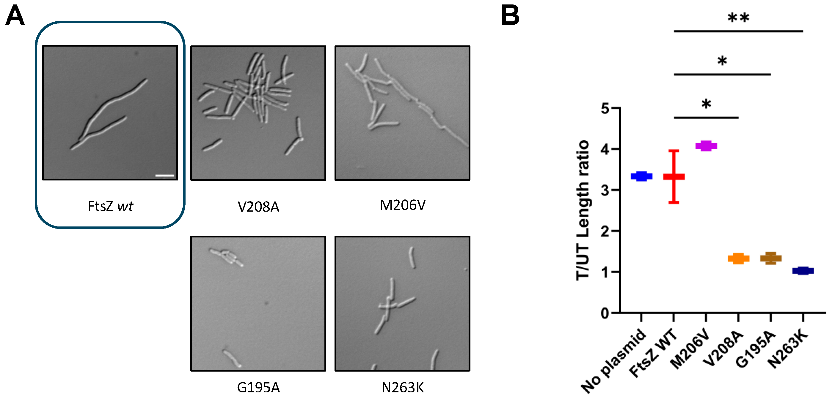 - Adams, D.W.; Wu, L.J.; Errington, J. A Benzamide-dependent Fts Z Mutant Reveals Residues Crucial for Z-ring Assembly. Mol. Microbiol. 2016, 99, 1028–1042. [Google Scholar] [CrossRef]