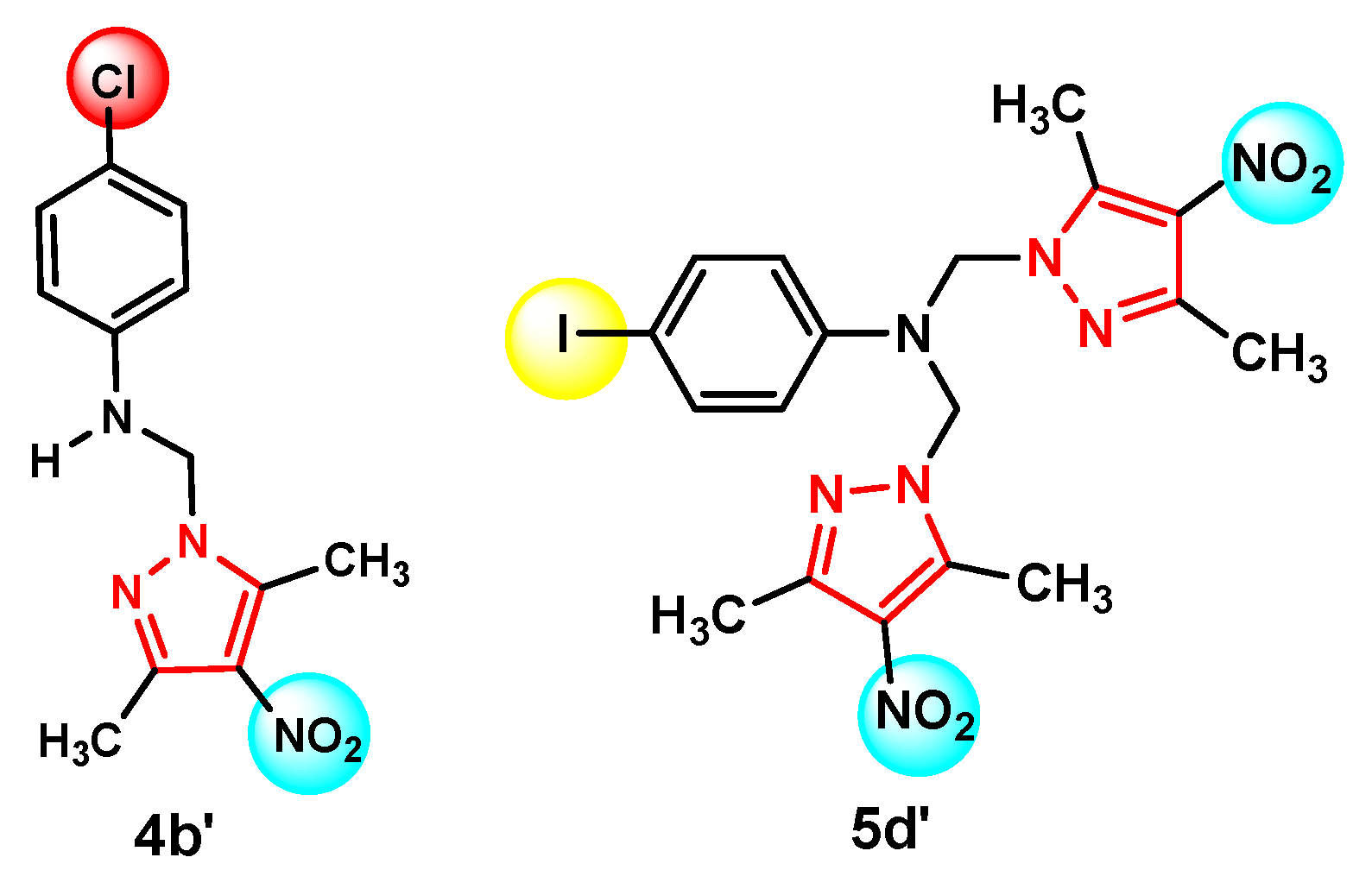 Synthesis of N, N-bis-[(3,5-dimetyl-4-iodo-1H-pyrazol-1-yl)-methyl]-4-chloroaniline (5b)