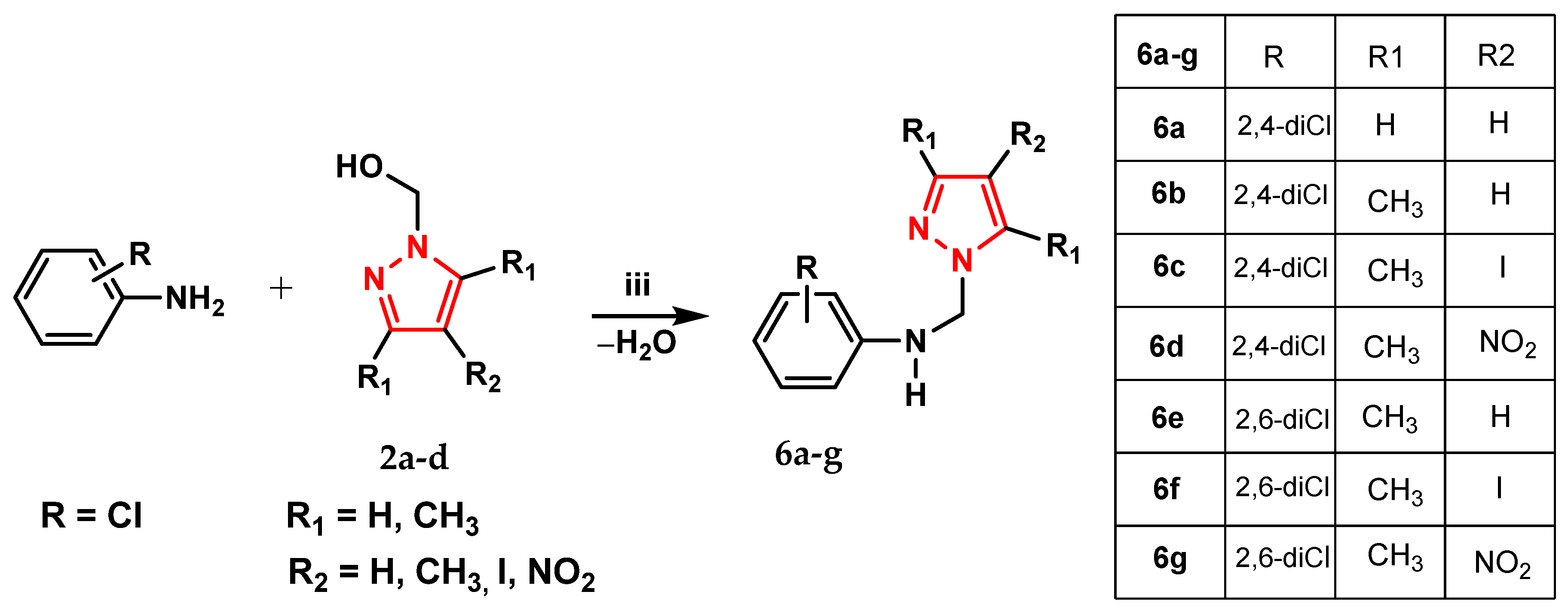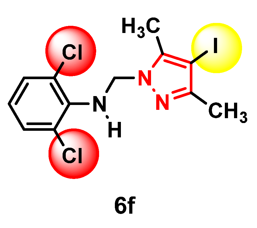 Synthesis of N-[(3,5-dimetyl-4-iodo-1H-pyrazol-1-yl)-methyl]-2,6-dichloroaniline (6f)