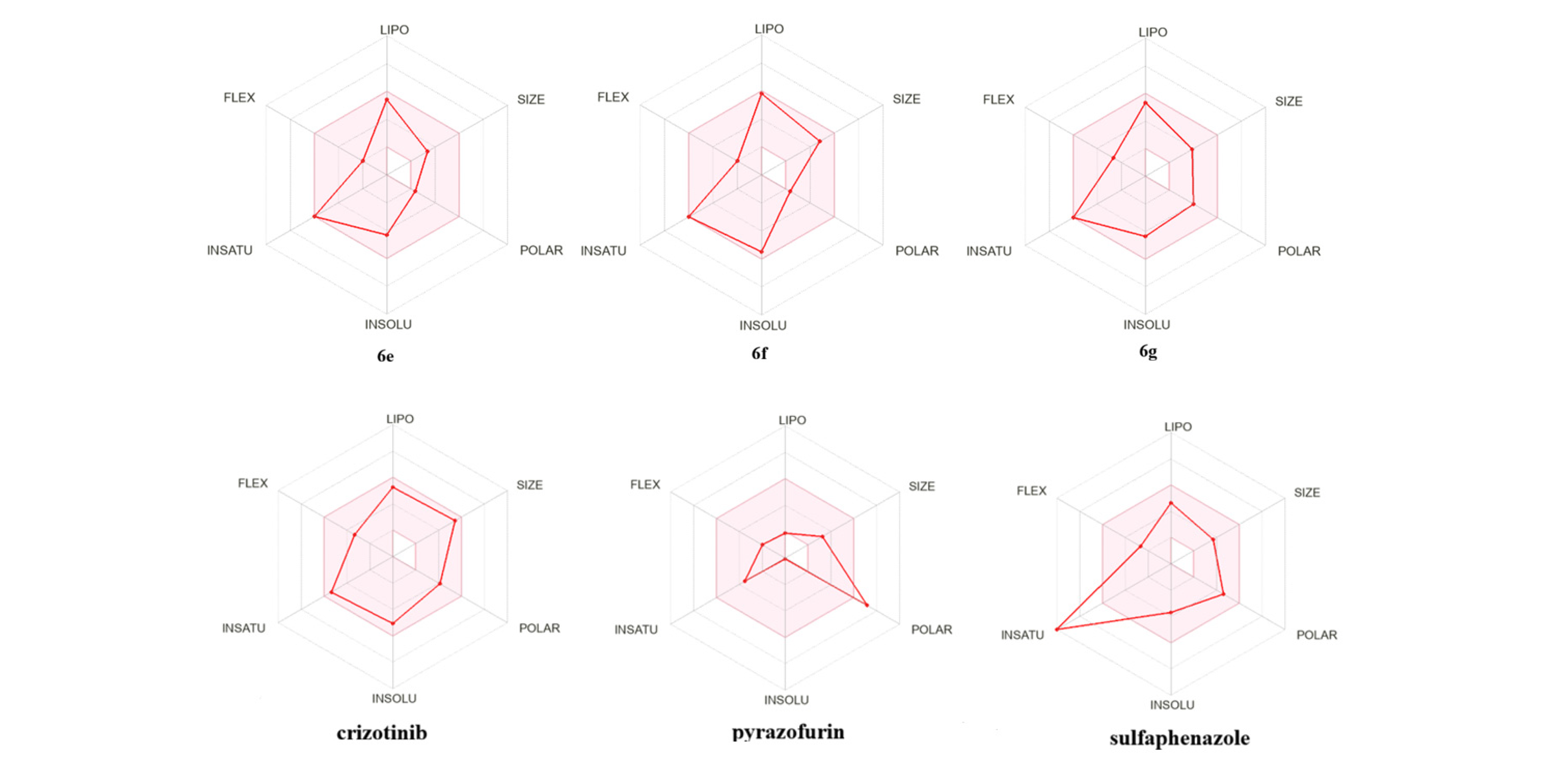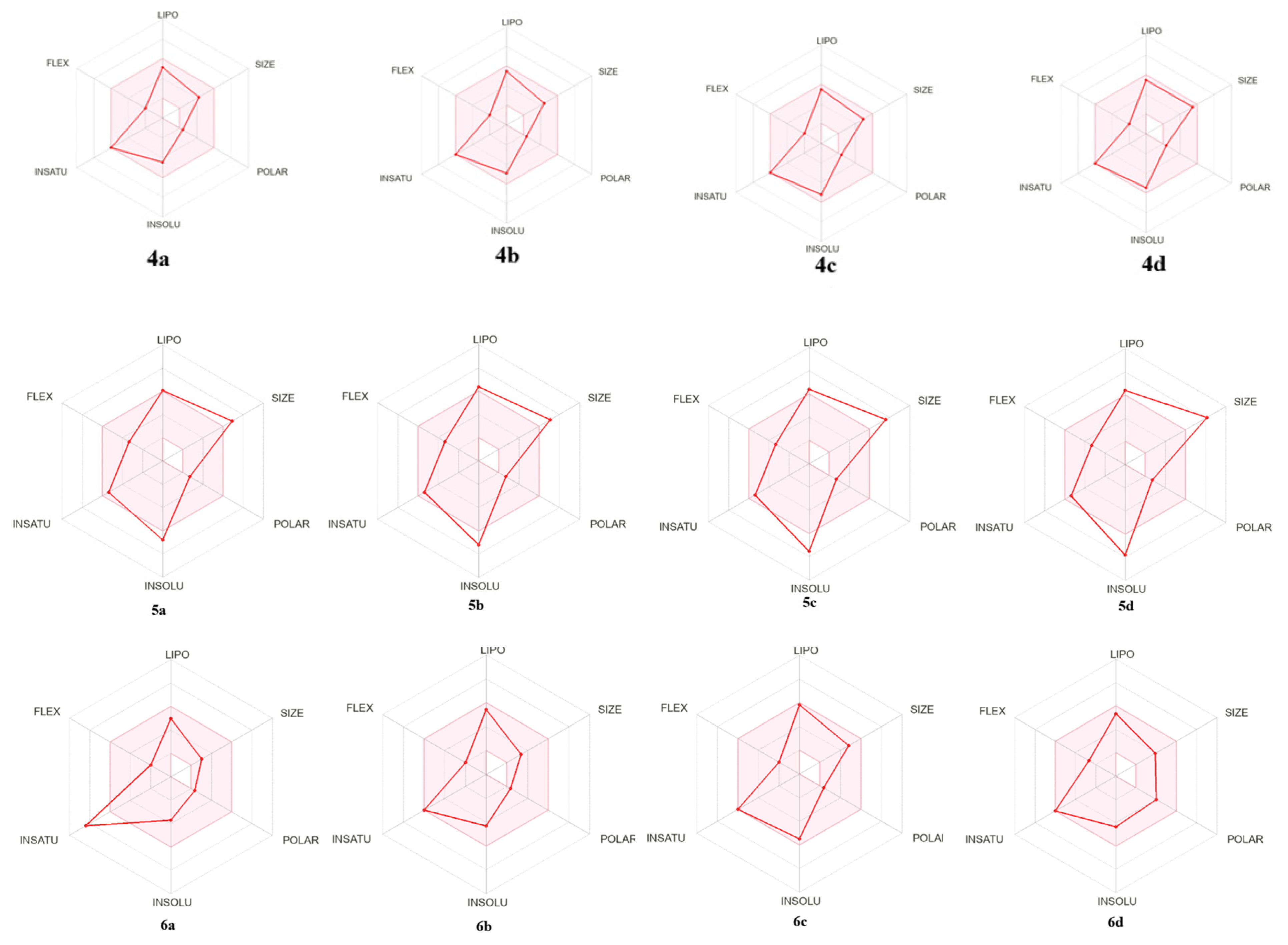 | Name | Size MW g/mol | INSATU | Flexibility | TPSA Å | Lipophilicity | Water Solubility |