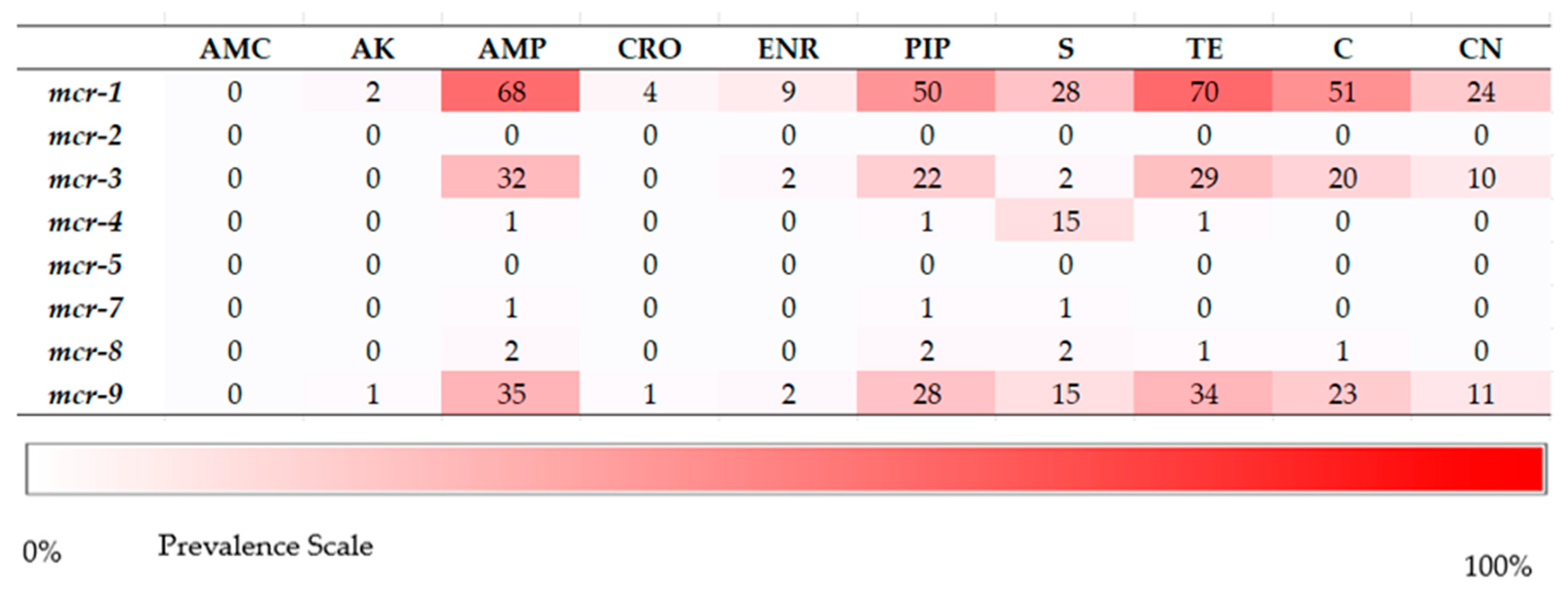 | mcr-9 | F: 5′-GCGGTTGTAAAGGCGTATGT-3′ | 635 | 59 | [76] |