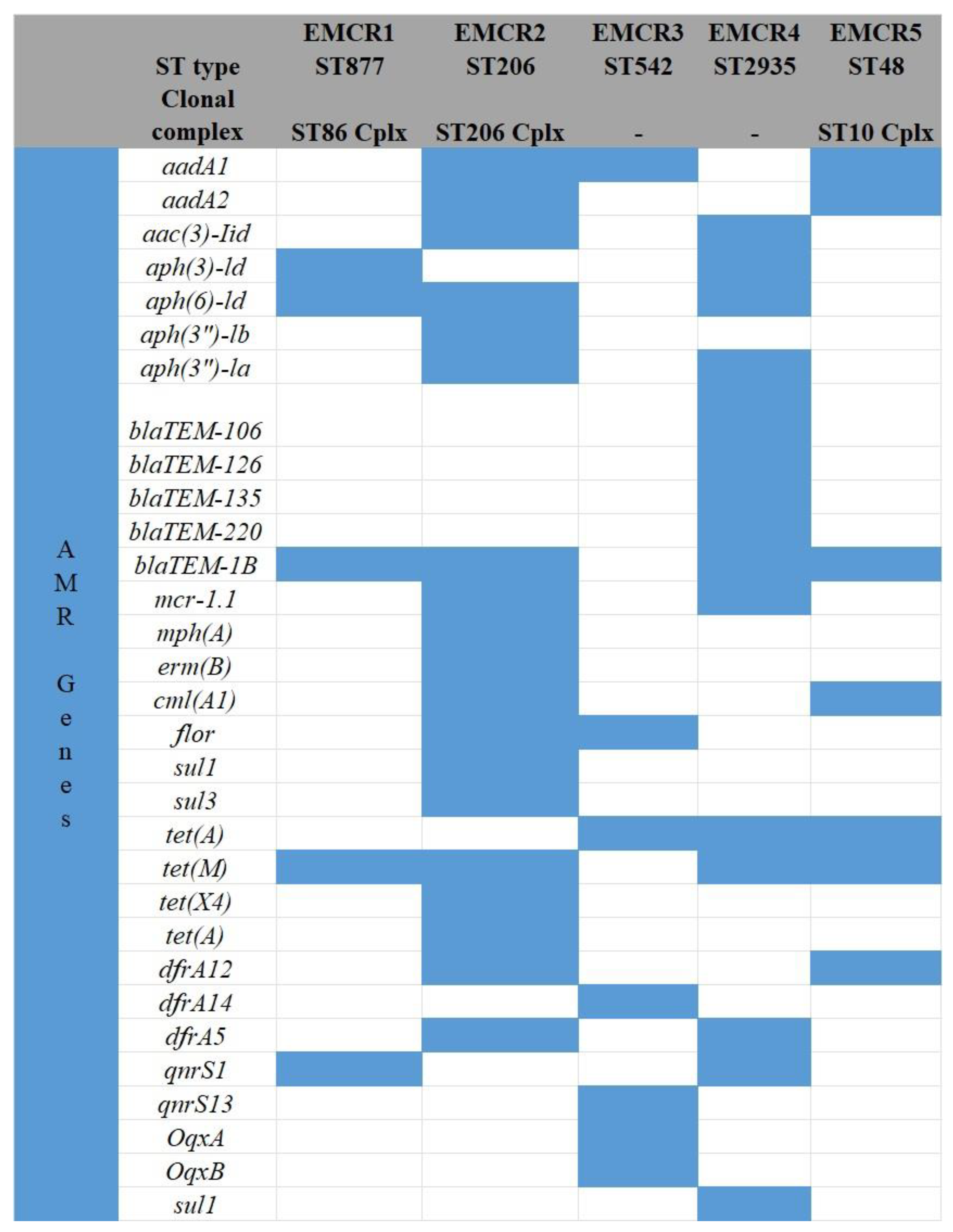 2.7. Presence of MLST by Whole-Genome Sequencing