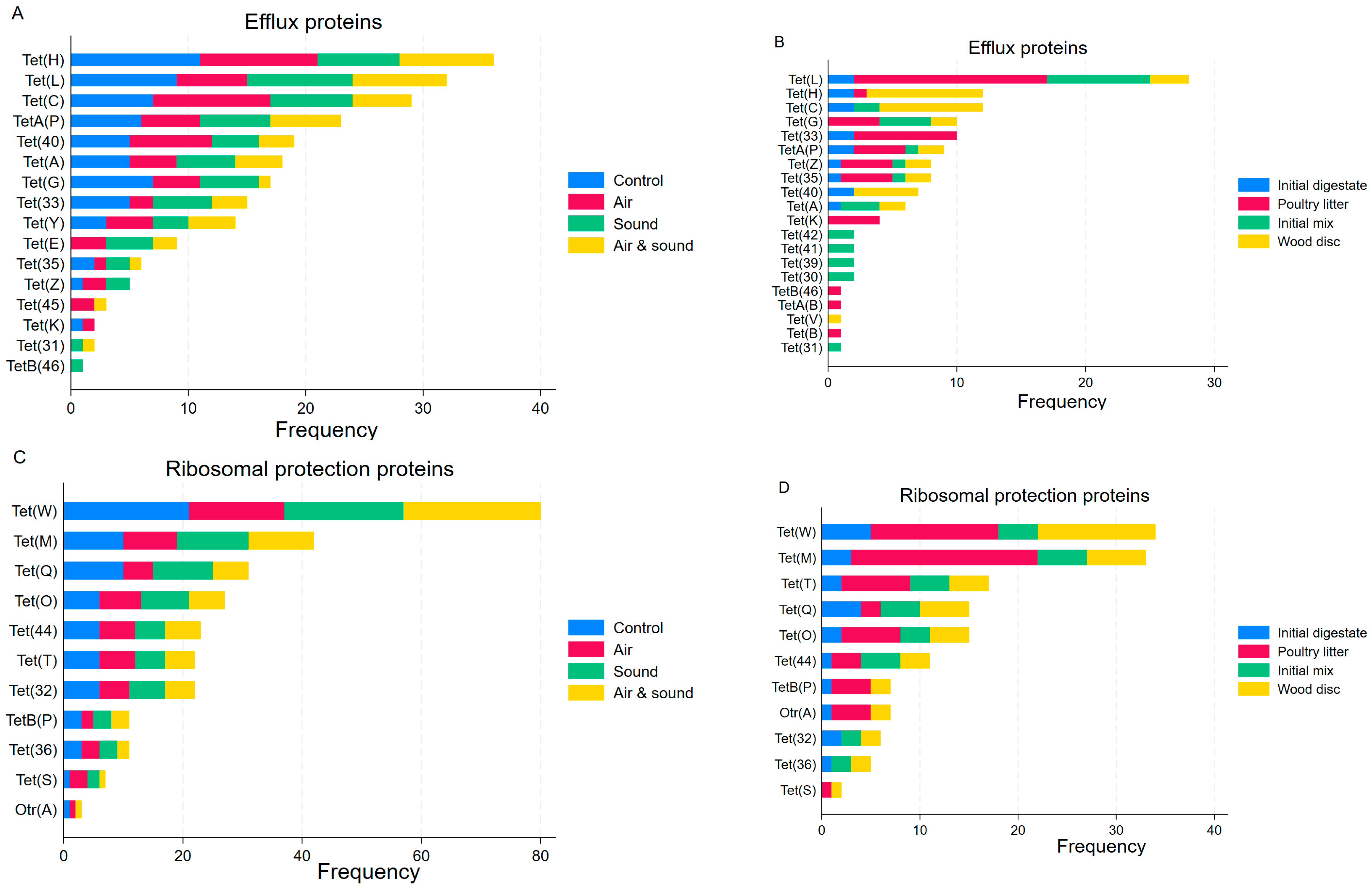 2.3. Effect of Anaerobic Digestion Treated with Micro-Aeration and/or Sound on Virulence Factor Genes in Poultry Litter