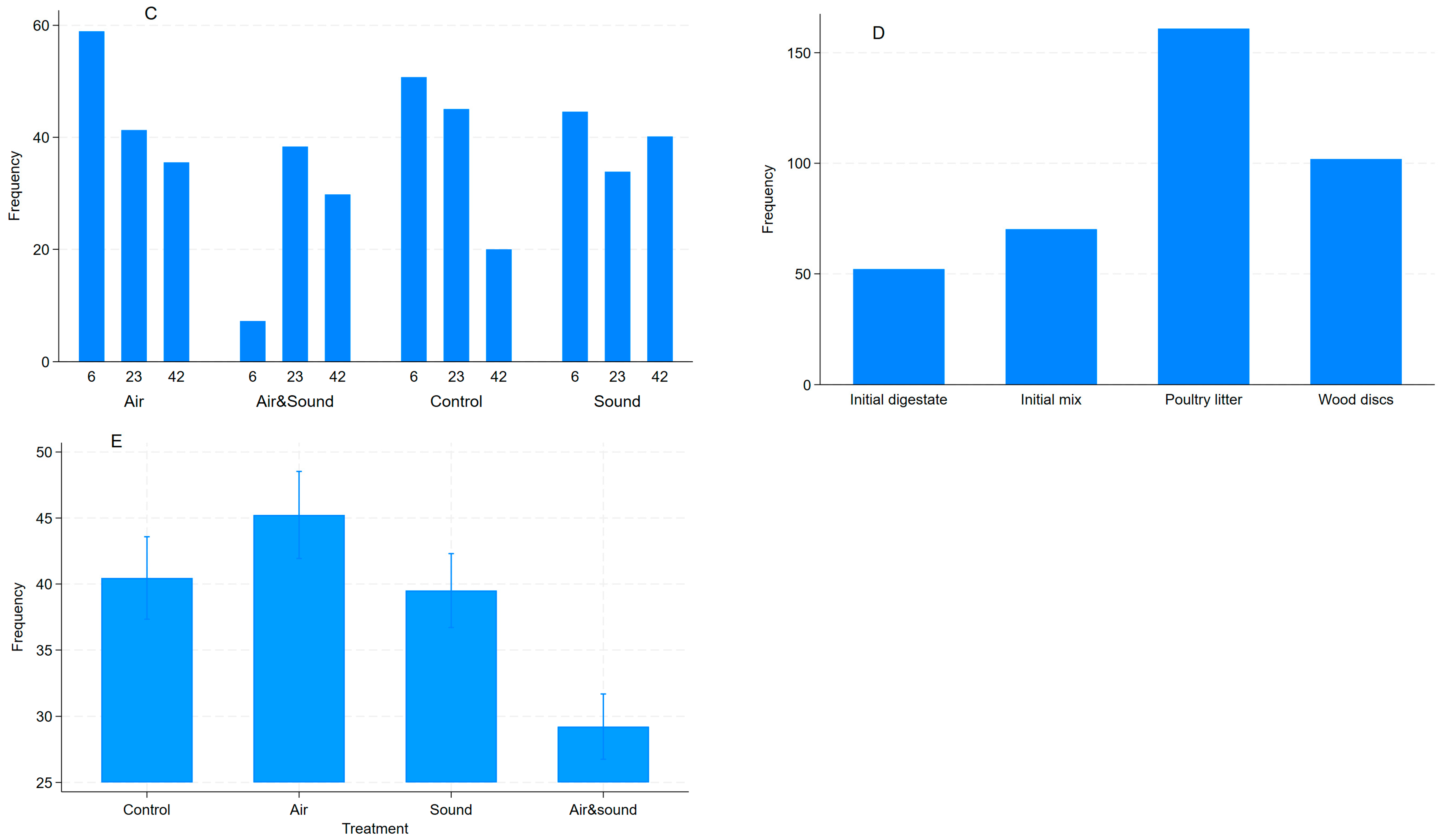 - Loughrin, J.; Antle, S.; Bryant, M.; Berry, Z.; Lovanh, N. Evaluation of Microaeration and Sound to Increase Biogas Production from Poultry Litter. Environments 2020, 7, 62. [Google Scholar] [CrossRef]