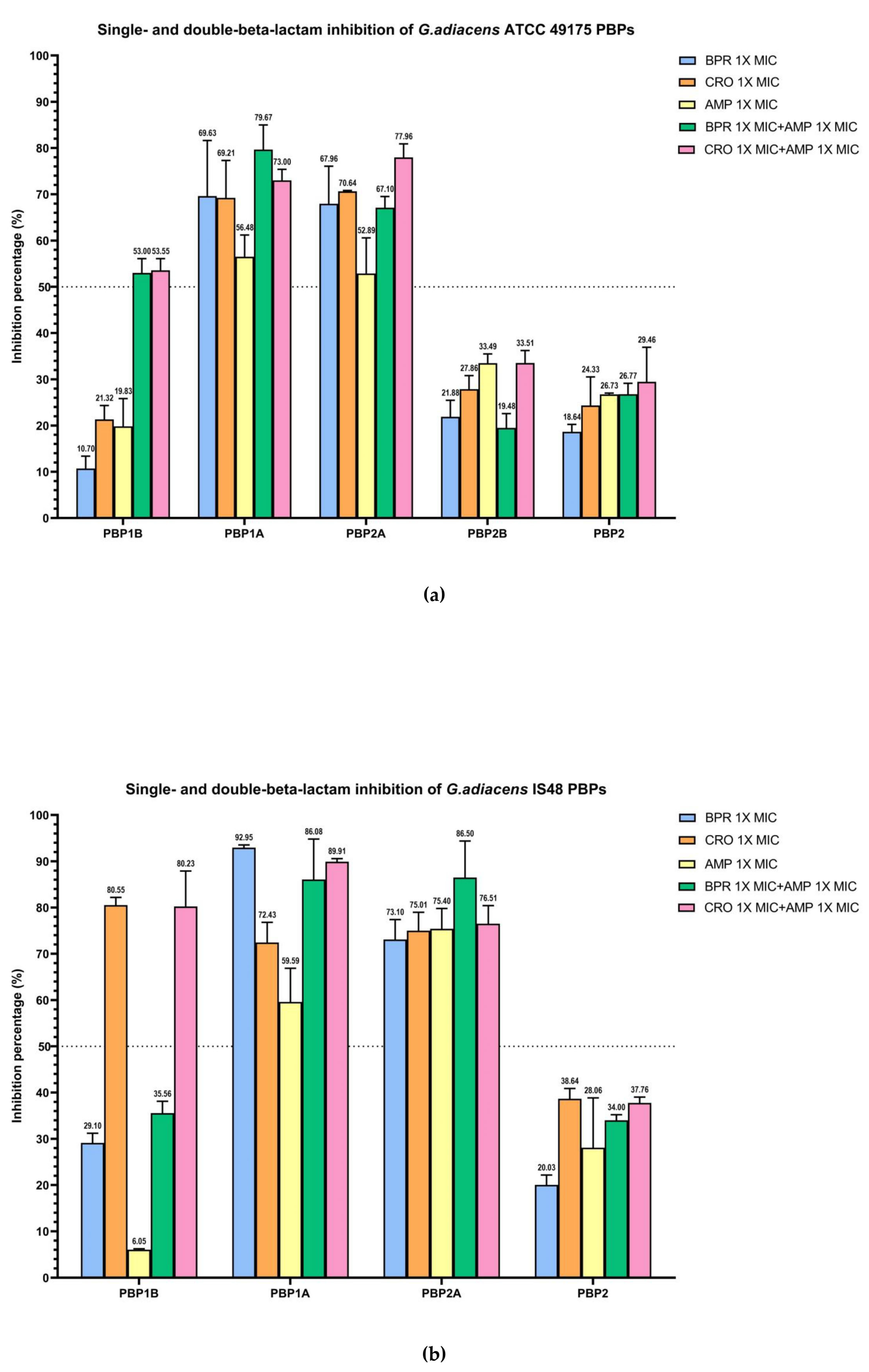 | PBP1B | ATCC 49175 | N.A. | N.A. | 0.02 ± 0.00 | N.A. | 0.04 ± 0.00 |