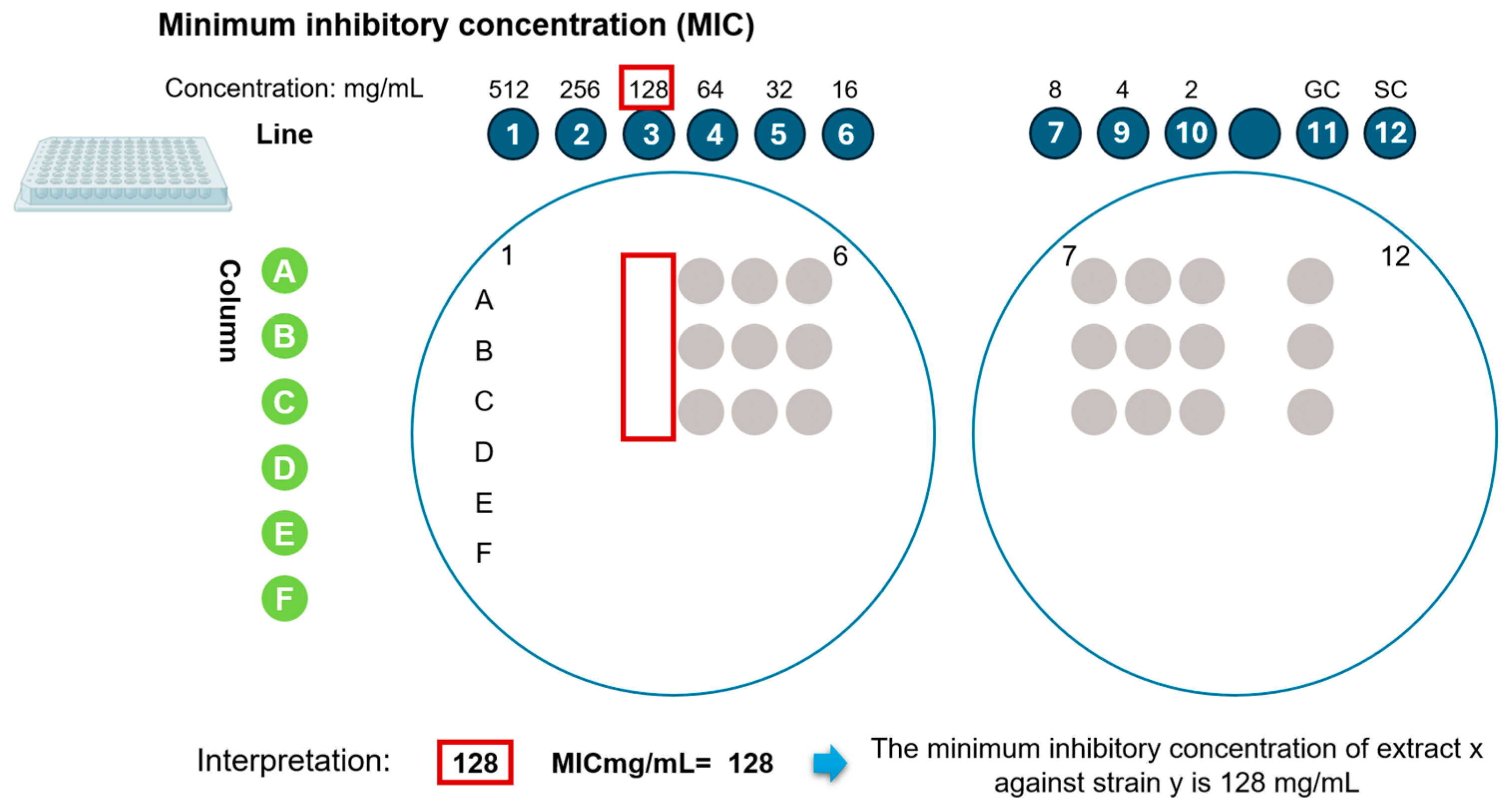 4.6. Determination of Minimum Inhibitory Concentration (MIC)
