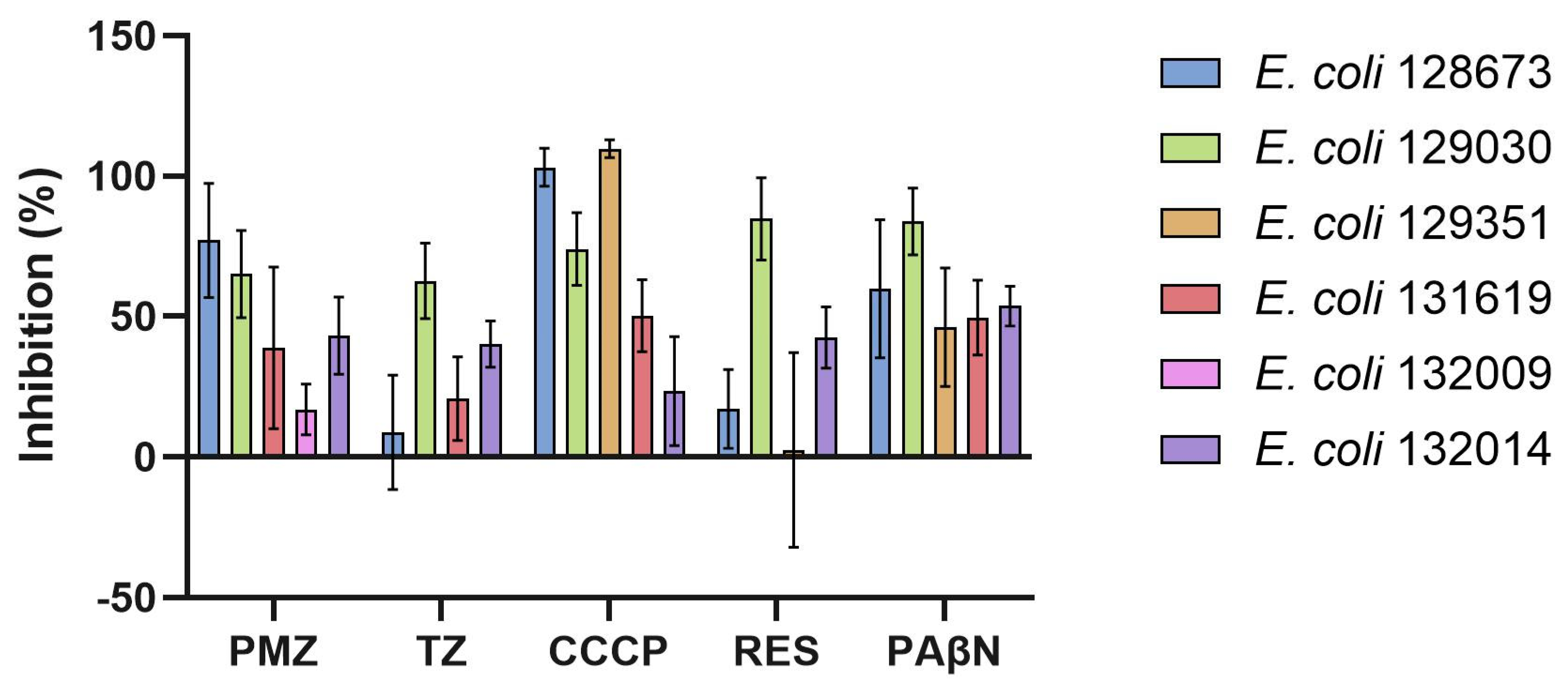| PMZ | TZ | CCCP | RES | PAβN | DMSO | |