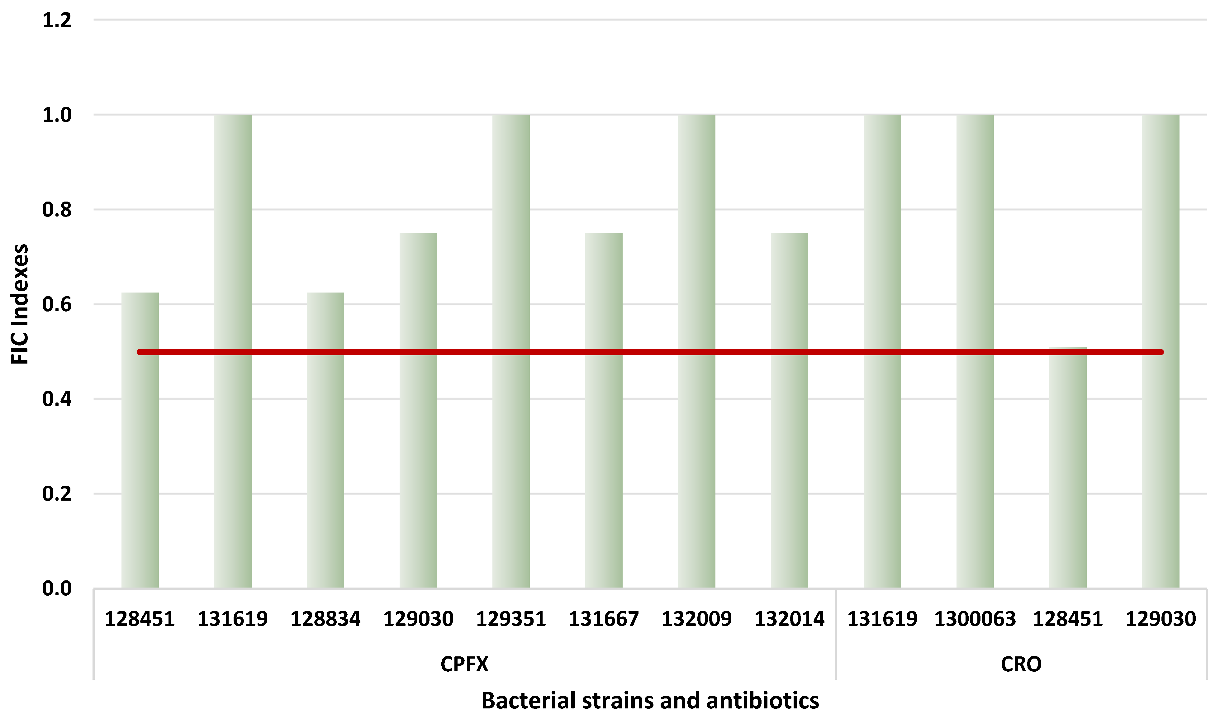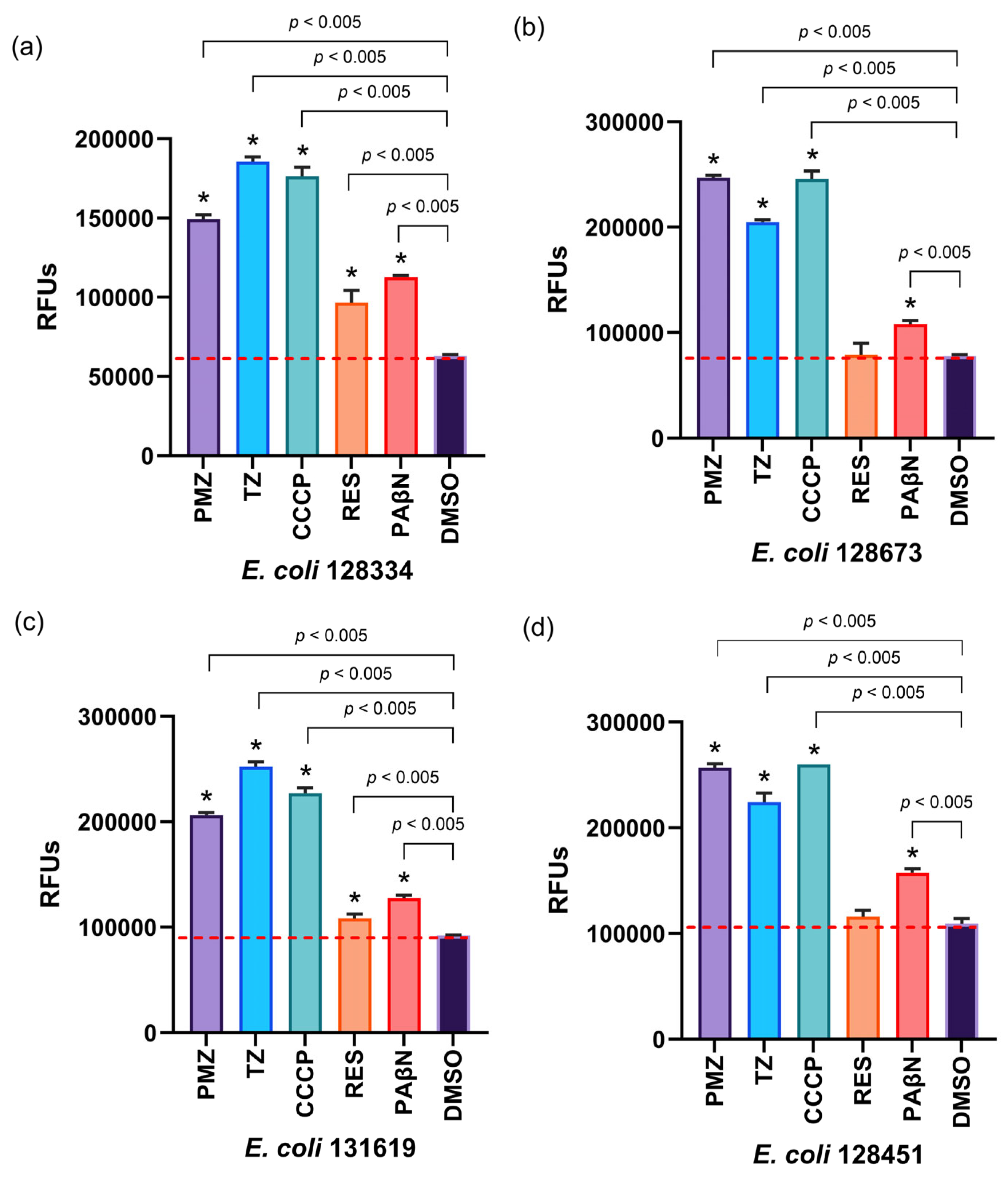 3.5. Relative Gene Expression Analyses and Efflux Pump Inhibition in the Selected 128451 Strain