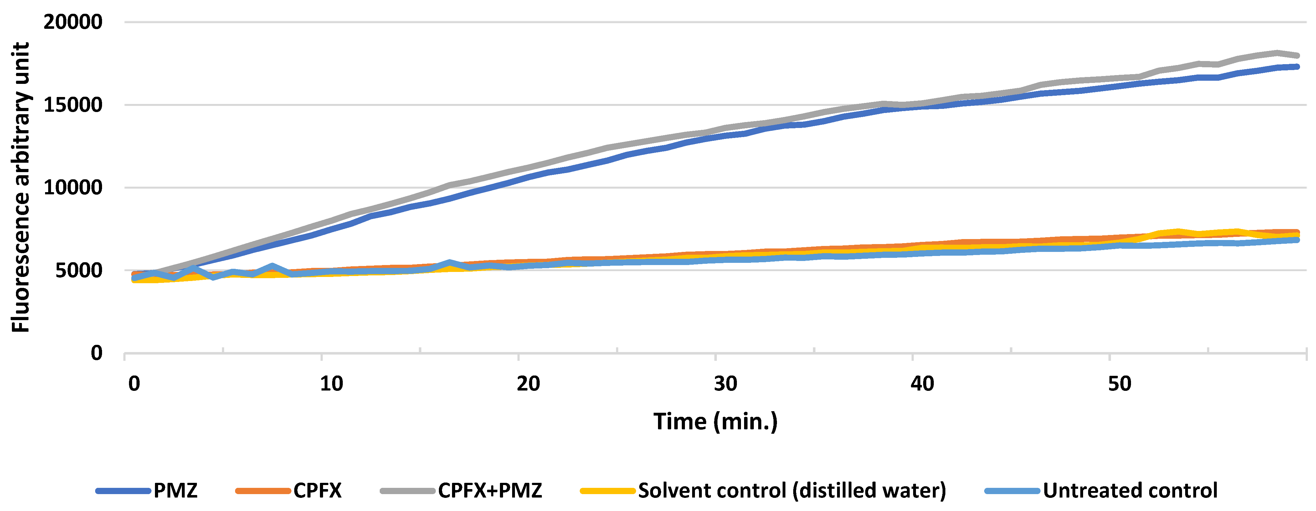 4.6. Real-Time Ethidium Bromide (EB) Accumulation Assay