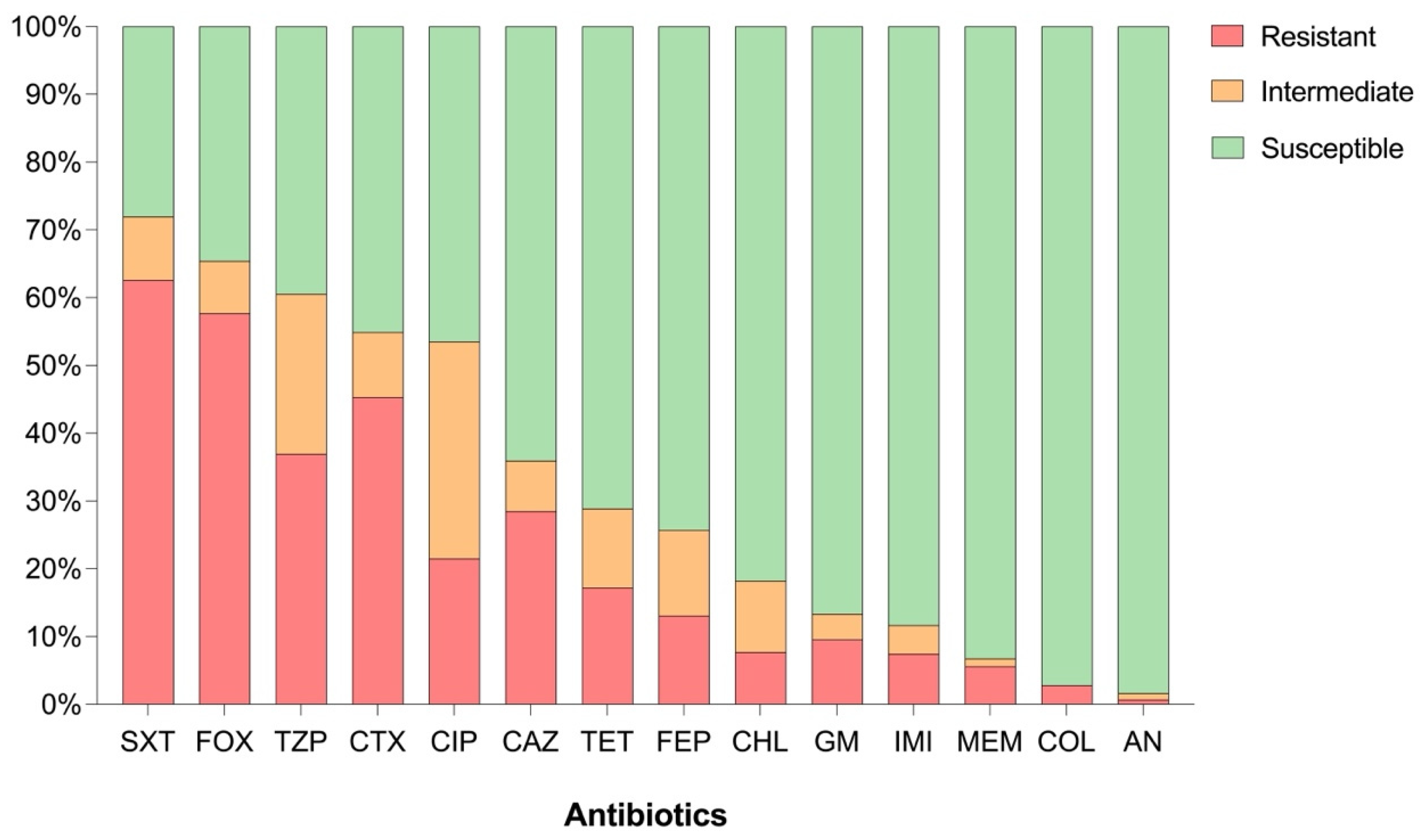 2.3. Antimicrobial Resistance Profiles and Classification