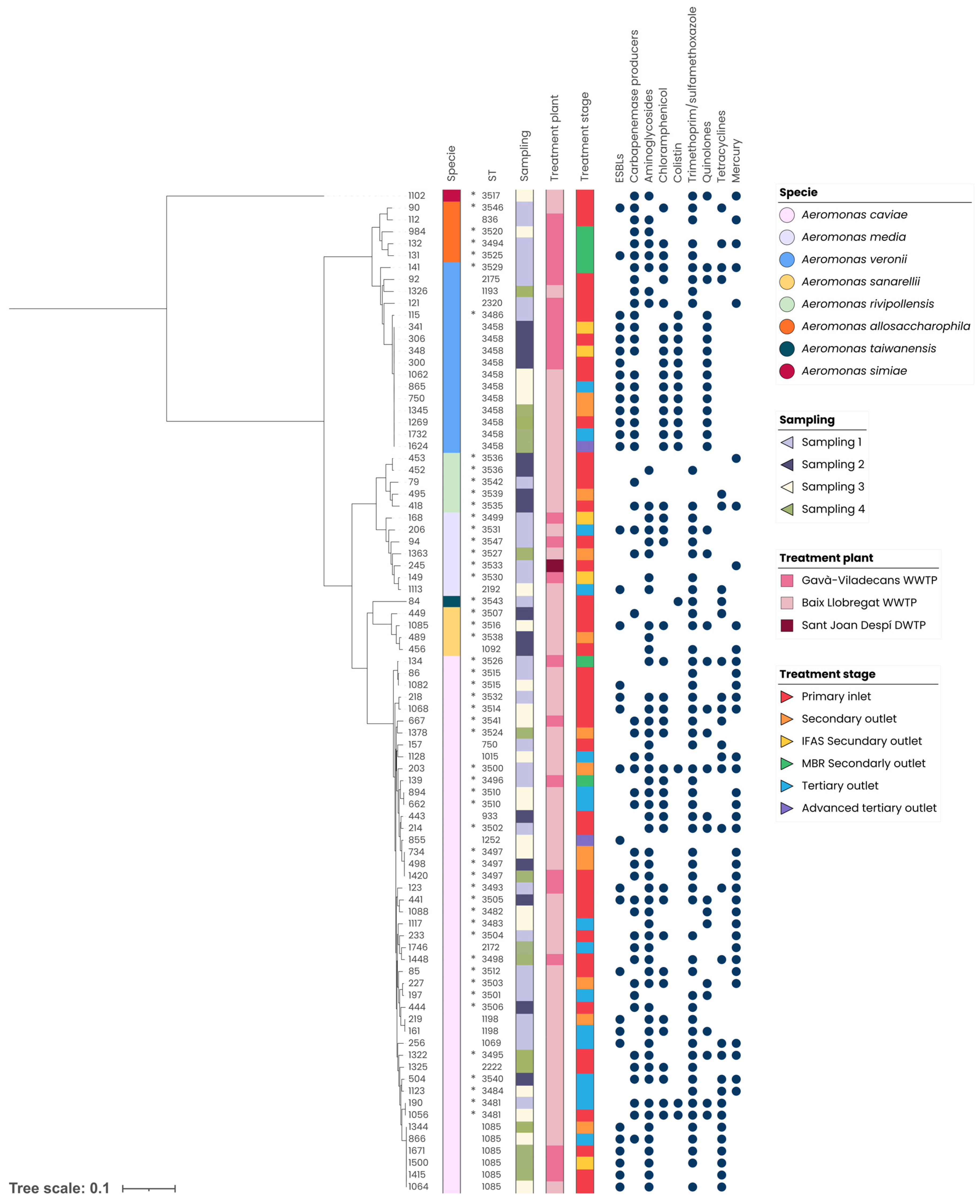 APA StyleMondéjar, L., Ballén, V., Gabasa, Y., Castellsagués, L., Pinar-Méndez, A., Vilaró, C., Galofré, B., González-Díaz, A., Martí, S., Sanz, S., & Soto, S. M. (2026). Characterizing Aeromonas spp. as a Potential Sentinel Organism for Antimicrobial Resistance Dissemination in Wastewater and Drinking Water Treatment Systems: A Case Study in the Barcelona Metropolitan Area, Spain. Antibiotics, 15(3), 301. https://doi.org/10.3390/antibiotics15030301