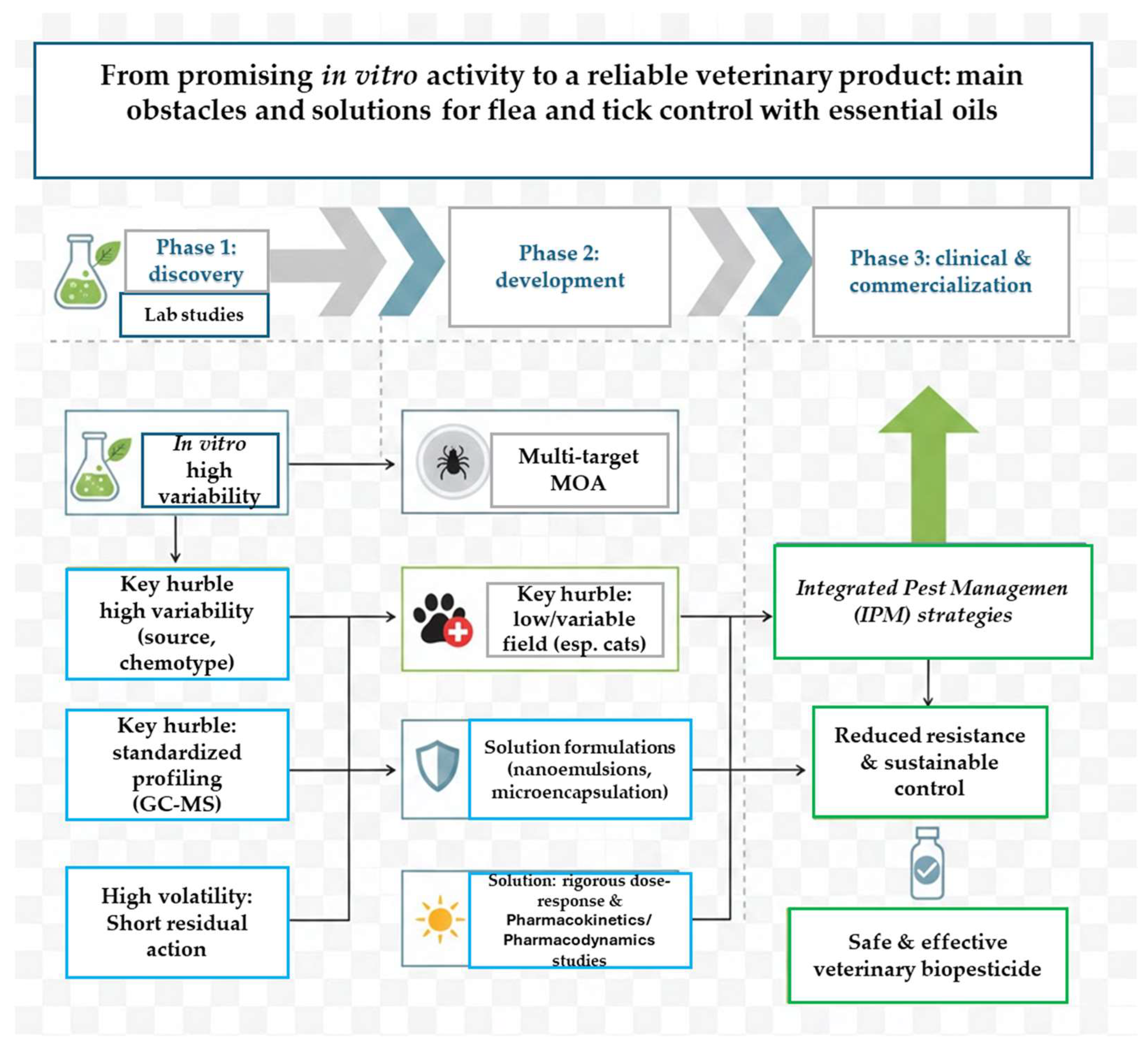 | 5. Role in Resistance Management & IPM as a rotational agent or synergist. | Efficacy “Gap”: Potent in vitro activity often fails to translate to reliable field performance on animals. | Advanced formulation science (nanoemulsions, encapsulation) to enhance stability, residual activity, and skin distribution. |
