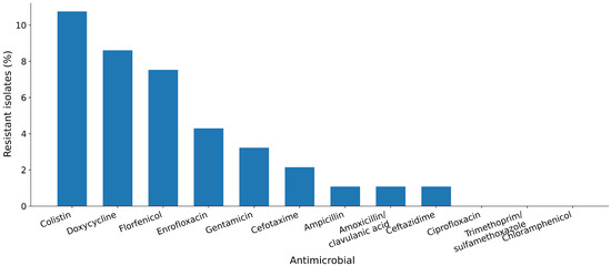 E. coli isolates from large-scale pig farms were tested by broth microdilution. Based on resistance-oriented screening from an extended-spectrum β-lactamase (ESBL)-screen-positive pool, 116 isolates were subjected to whole-genome sequencing (WGS) as a resistance-enriched subset. Resistance determinants were annotated using the Comprehensive Antibiotic Resistance Database (CARD).