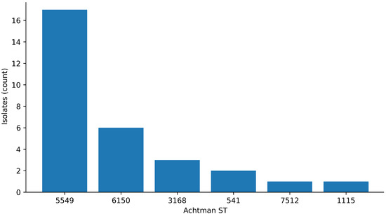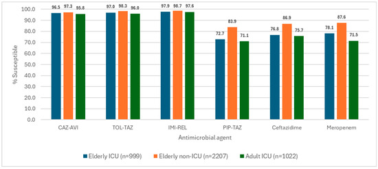 p = 0.75). Non-β-lactam minimum inhibitory concentration (MIC) distributions showed pronounced, site-dependent high-MIC “tails”, most notably for tetracyclines, trimethoprim–sulfamethoxazole, fluoroquinolones, and colistin. In the WGS cohort (
