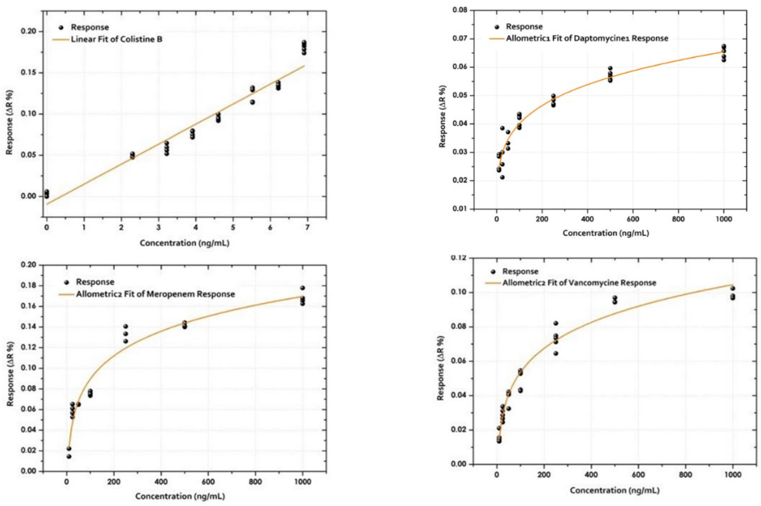 - Li, S.; Zhou, L.; Wang, X.; Ren, R.; Li, H.; Mao, Y.; Liu, J.; Li, L.; Cao, Y. Antibody-based surface plasmon resonance sensor platform for monitoring amikacin drug concentrations in human serum samples. Spectrochim. Acta Part A Mol. Biomol. Spectrosc. 2025, 333, 125840. [Google Scholar] [CrossRef] [PubMed]