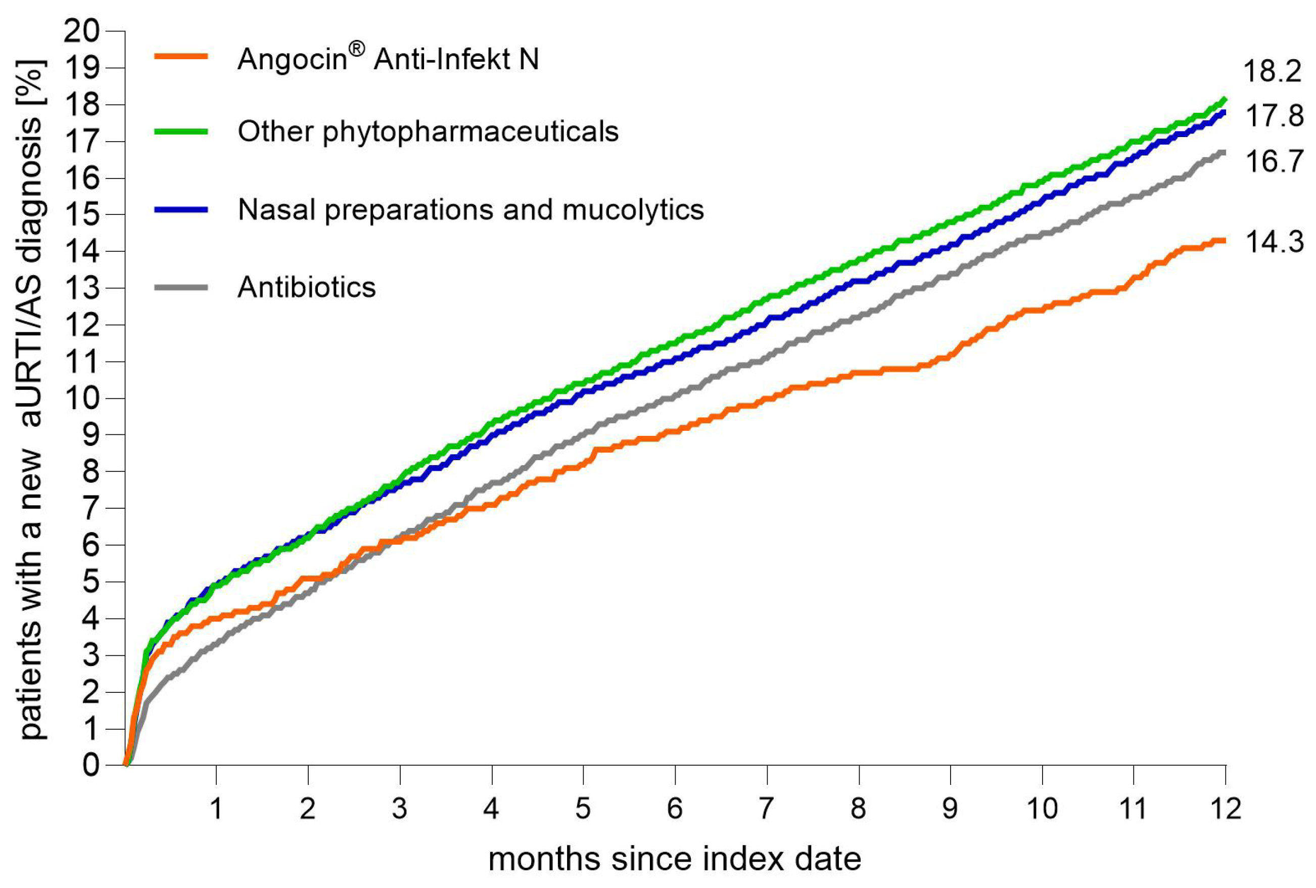 ® was also consistently associated with the lowest likelihood of subsequent antibiotic use across all comparison groups. But, a comparison with antibiotics could always be critically questioned, as patients who receive an antibiotic on the day of diagnosis are often presumed to be more severely ill than those treated with phytopharmaceuticals such as Angocin