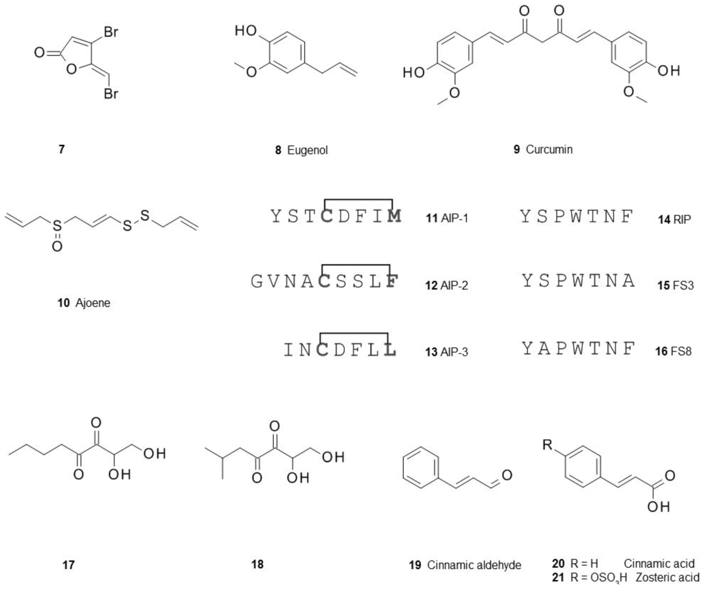 - Wang, Y.; Ma, S. Small molecules modulating AHL-based quorum sensing to attenuate bacteria virulence and biofilms as promising antimicrobial drugs. Curr. Med. Chem. 2014, 21, 296–311. [Google Scholar] [CrossRef] [PubMed]