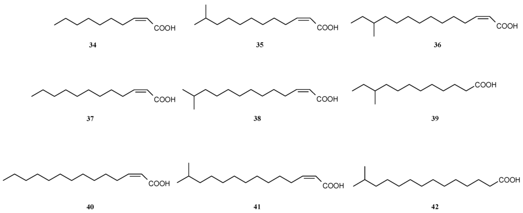 - Inoue, T.; Shingaki, R.; Fukui, K. Inhibition of swarming motility of Pseudomonas aeruginosa by branched-chain fatty acids. FEMS Microbiol. Lett. 2008, 281, 81–86. [Google Scholar] [CrossRef] [PubMed]