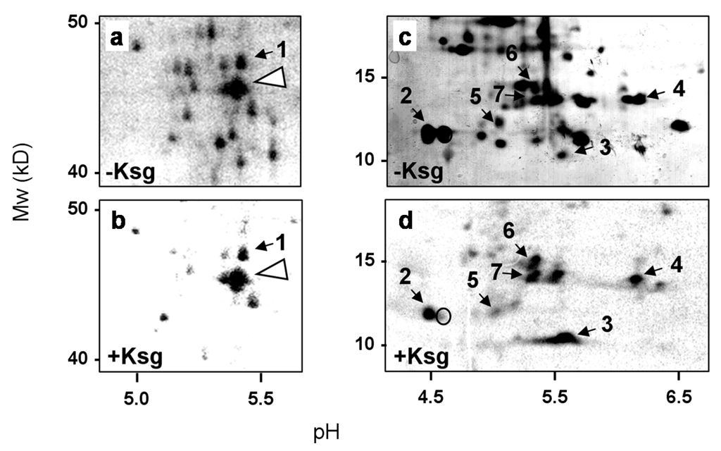 Selectively synthesized proteins in the presence of Ksg.