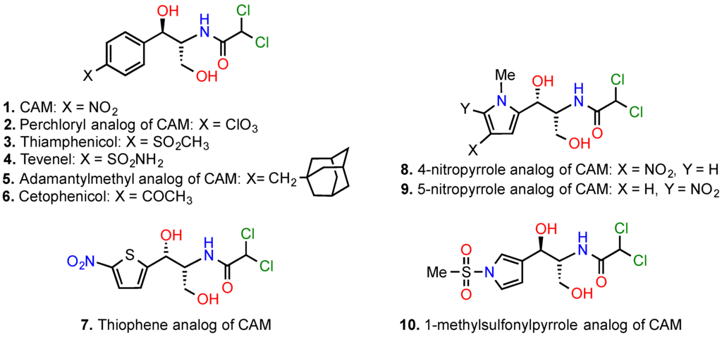 - Neu, H.C.; Fu, K.P. In vitro activity of chloramphenicol and thiamphenicol analogs. Antimicrob. Agents Chemother. 1980, 18, 311–316. [Google Scholar] [CrossRef] [PubMed]