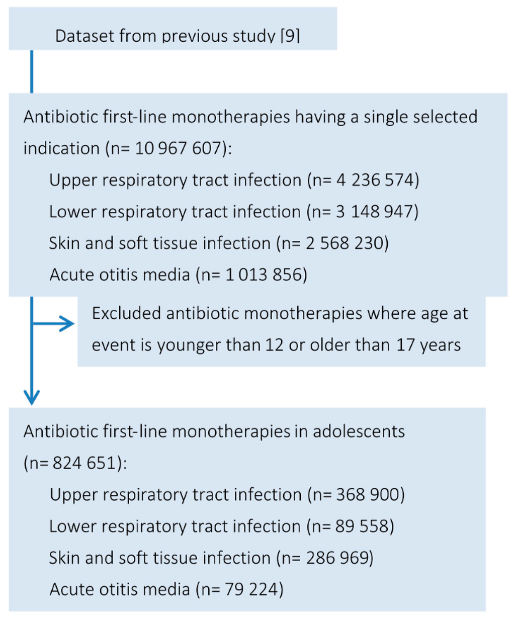 3.3. Most Commonly Prescribed Antibiotics in Adolescents