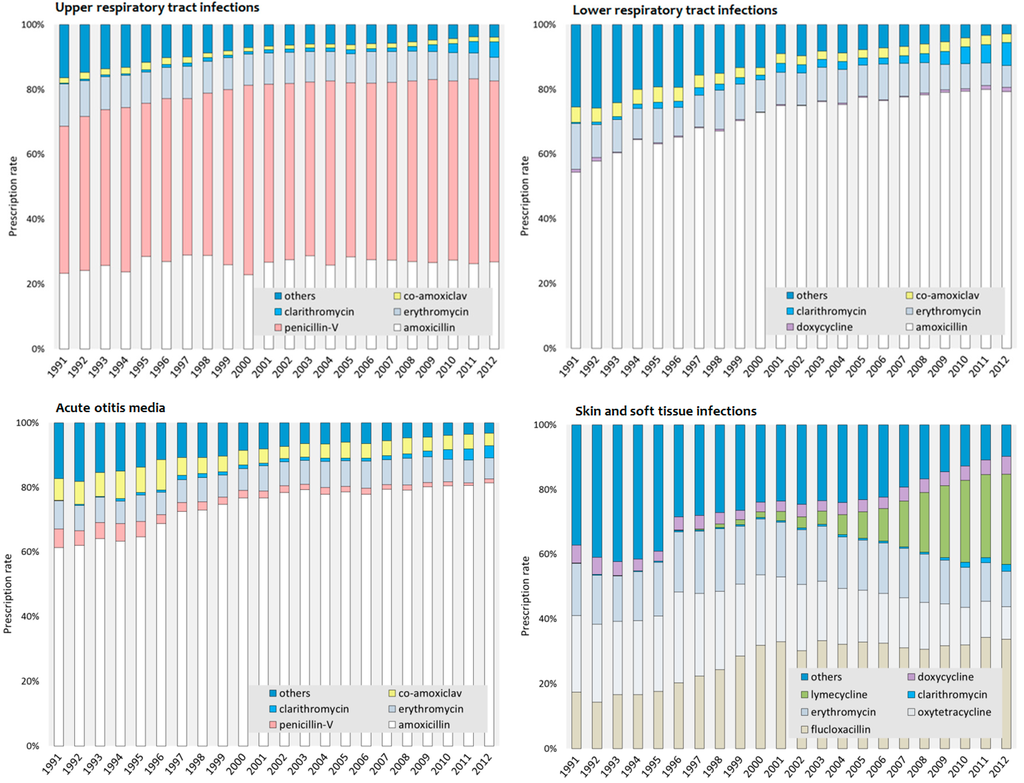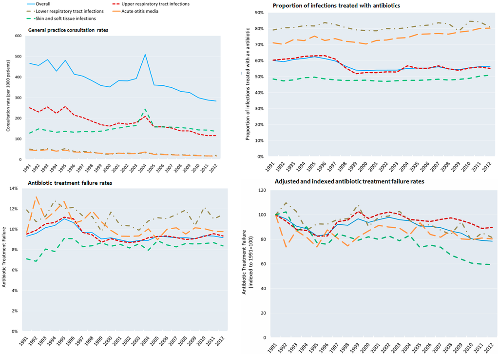 - Cosby, J.L.; Francis, N.; Butler, C.C. The role of evidence in the decline of antibiotic use for common respiratory infections in primary care. Lancet Infect. Dis. 2007, 7, 749–756. [Google Scholar] [CrossRef]