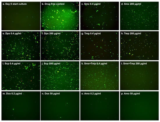 The following drugs were obtained from Sigma-Aldrich, St. Louis, MO, USA and dissolved in suitable solvents as suggested by the Clinical and Laboratory Standards Institute to make a 5 mg/mL stock solution: doxycycline (Dox), cefuroxime (CefU), ciprofloxacin (Cip), sulfamethoxazole (Smx), dapsone (Dps), sulfachlorpyridazine (Scp), trimethoprim (Tmp), azithromycin (Azi), rifampin (Rif), minocycline (Min) and daptomycin (Dap). The drug stock solutions were filter-sterilized using a 0.2 µm filter and stored at −20 °C.