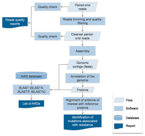 - Hunt, M.; Mather, A.E.; Sánchez-Busó, L.; Page, A.J.; Parkhill, J.; Keane, J.A.; Harris, S.R. ARIBA: Rapid antimicrobial resistance genotyping directly from sequencing reads. Microb. Genom. 2017. [Google Scholar] [CrossRef] [PubMed]