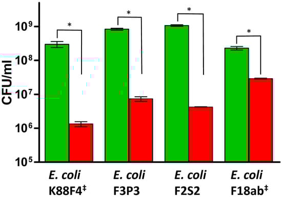 - Nagy, B.; Fekete, P.Z. Enterotoxigenic Escherichia coli in veterinary medicine. Int. J. Med. Microbiol. 2005, 295, 443–454. [Google Scholar] [CrossRef] [PubMed]